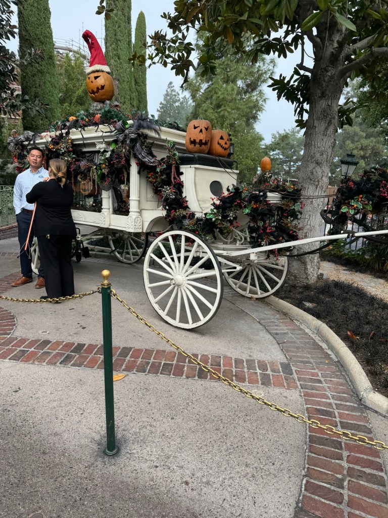 When I had gone past the monorail, there was a dedicated line for resort guests with early entry. The same was not true at the main entrance. By the time I was inside the park, it was just about time for the park to officially open. This may well have been a blessing in disguise though. As soon as I was in the park, I made my first Genie+ reservation for Millennium Falcon: Smugglers Run. When I got to Star Wars Land, the waiting time for Ride of the Resistance was 15 minutes. In the 5 minutes or so that it took me to find the ride, this had gone up to 45 minutes. Looking at the line, I thought that was optimistic. I gave up on that idea and headed to Millennium Falcon: Smugglers Run. This had gone down. I made a reservation Haunted Mansion Holiday instead, which is my favourite ride at Disneyland.