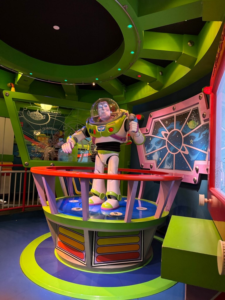 Once I had crossed over into Fantasyland, I spotted a Photopass photographer near a teacup. I stopped for some photos and even got a magic shot with the Cheshire Cat. Then I pushed on towards Tomorrowland. I was considering the Matterhorn, but the line was very impressive. Instead, I headed towards Space Mountain as I know this ride has a single rider line. That ride was down. I went over to Buzz Lightyear Astro Blasters. The wait for that was 30 minutes. I was happy with this and got in line. I took a few photos and then worked on typing up some of the trip report on my phone. I also made a mobile order for lunch. This was a little later than I had hoped for, but I was sure that I would be able to amuse myself. Eventually it was my turn. I only scored 9000 points, which was disappointing, but I still enjoyed the ride. On this ride, you can email the ride photos to yourself, which I did. However, the image quality is abysmal.