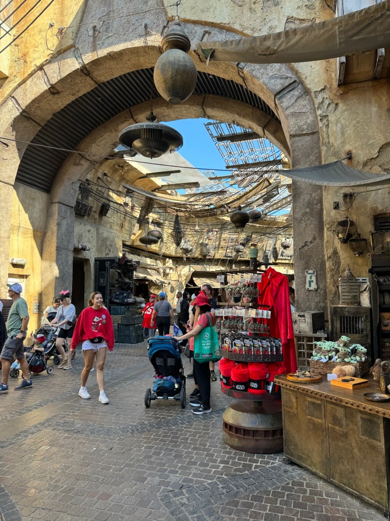 I had a quick look at the attached gift shop and then I headed over to Star Wars: Galaxy’s Edge for the third time that day. I had come in from a different direction and had no idea on how to get to the ride from where I was. Fortunately, there was a cast member nearby and he pointed me in the right direction. I am not a huge Star Wars fan, but have seen all of the main films. The ride is however very cleverly done, and I agree with the assessment that this needs to be experienced at least once. For people using the Lightning Lane, the experience starts in ancient caves that house a Resistance control centre where they are given a mission by BB-8 and a hologram of Rey to rendezvous with General Leia Organa on the faraway planet of Pacara. The recruits then walk past a number of different spaceships and enter a large spaceship that is meant to take them to the rendezvous point. This is a very gentle simulator with all kinds of special effects simulating space travel. The spaceship is intercepted by the First Order and taken to hangar. This was probably my favourite part of the experience. It is just stunning. While Kylo Ren is discussing the interrogation with somebody else, the recruits manage to get into escape pods. The final part of the ride is a trackless ride, but it is the most sophisticated trackless ride I have encountered. It has some very cool special effects. It is also over two levels and near the beginning of this part, you go up on a lift. There is also a part near the end where the vehicle is turned into a simulator, but this was smooth, and I did not mind this. The one element I was worried about was the drop. I had read before our trip that it uses the same drop shaft technology that Tower of Terror uses. People did tell me that this is a complete non-event and fortunately they were right. By the time the drop registered with me, we were at the bottom. I still think when it comes to the best ride Disney has produced, Pirates of the Caribbean at Shanghai Disneyland still comes out on top for me, but this is a close second. It is really one very special ride.
