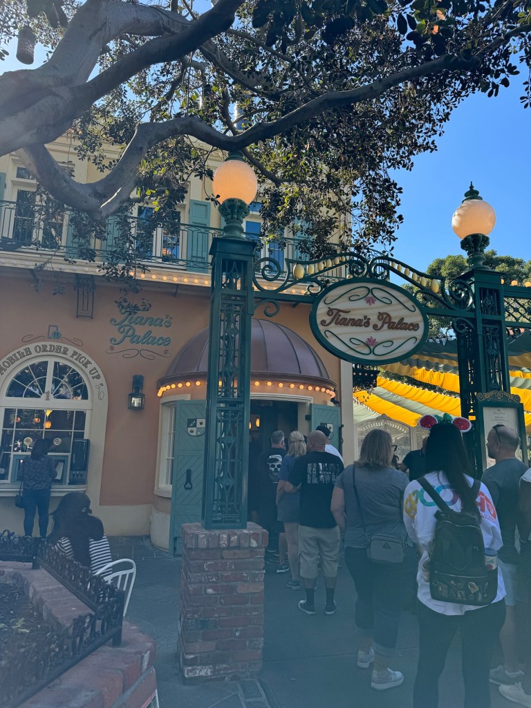 I figured that I would probably have enough time to do Pirates of the Caribbean before my mobile order window for lunch opened. However, I could not even see the end of the line when I walked past, and I gave up on this idea. I also had a look at Haunted Mansion Holiday and the waiting time for this was crazy, too. My multi experience pass that I got for Millennium Falcon: Smugglers Run breaking down earlier in the day was not valid for this. Instead, I took a wander around New Orleans Square and browsed in some of the shops. I walked past Club 33 and thought of the precious memories that I had made there over the years. I also tried to get a photo of Tiana’s Palace, where I would have lunch later. I sat down on a bench nearby for a while to have a rest.