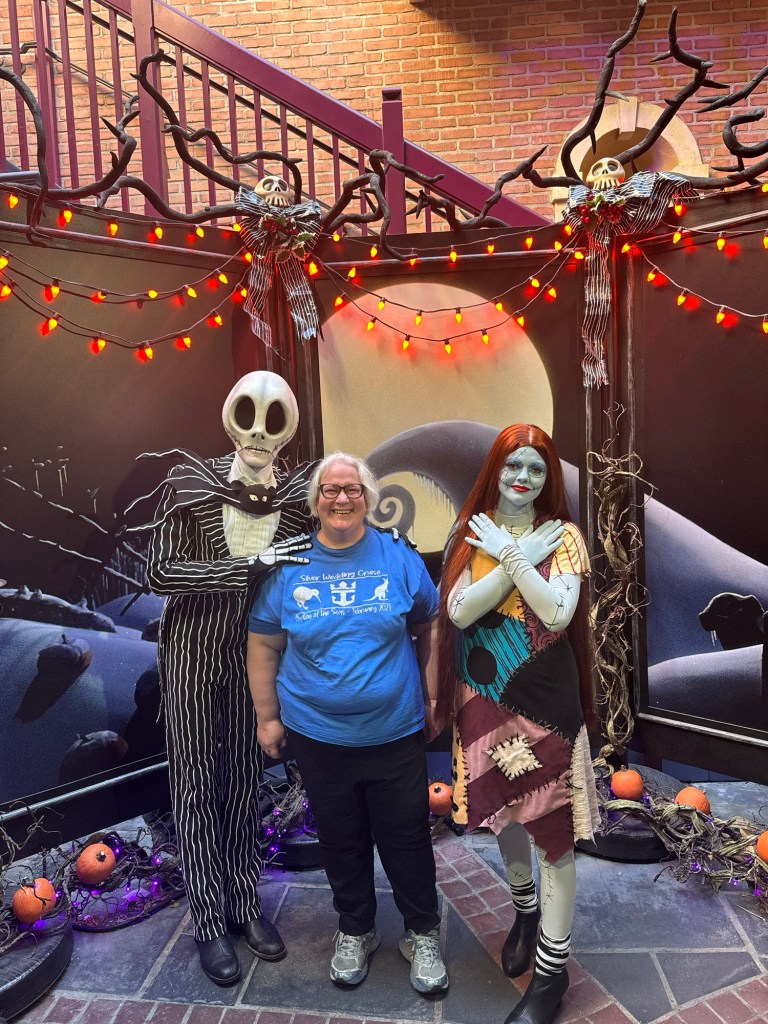 Once I had rested enough, I checked out a shop near Pirates of the Caribbean. Outside the shop was a sign inviting people to meet a special visitor for Halloween. Halloween had been and gone. However, there was a short line next door to the shop. While I was browsing in the shop, I looked across to a courtyard area outside the far end of the shop and spotted Jack Skellington and Sally meeting people. This is what the sign was for. I finished looking around the shop and then got in line. There were about 20 people in front of me, most of which were in family groups. The line moved quickly and soon it was my turn. Jack Skellington was very sociable, and I enjoyed the interaction. I was surprised that there was no Photopass photographer at this meet and greet, but the cast member that was with Jack Skellington and Sally took plenty of photos with my phone.
