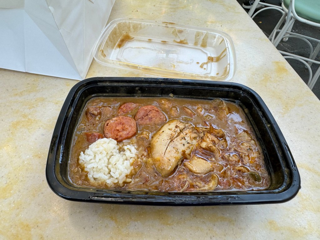 When I was done with Jack Skellington and Sally, I quickly used the bathroom nearby and then I headed back towards Tiana’s Palace. This time round, my window did not open early and when I confirmed that I was there after my window opened, I had about a 15-minute wait until my food is ready. Tiana’s Palace had replaced the French Market restaurant and had been open a little over a month when I visited. I had loved the French Market restaurant on previous visits, but I was keen to try Tiana’s Palace. It was very busy, and I had to circle a couple of times before I found a seat. I had gone with the House Gumbo with braised chicken, andouille sausage and heirloom rice. This was a little spicier than what I would have liked, but it was still delicious. I had some Gumbo from a take-out window at Downtown Disney and I do not recall that it was as spicy. I had spilled some on my top and once I had finished my lunch, I headed back to the bathroom for a bit of a clean-up operation. Then I headed for the exit.