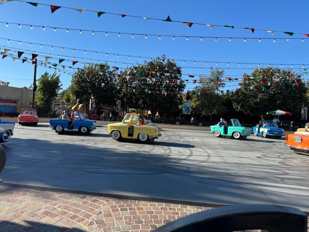 Things were a lot quieter at Disney California Adventure, which was very welcome. I headed over to Soarin’ Around the World. Normally this ride has a single rider line, but this was not operating when I got there as one side of the ride was down. The posted waiting time was a little long for my liking. Instead, I headed over to Carsland. I wanted to do the single rider line for Radiator Springs Racers. On the way, I found that Luigi’s Rollickin’ Roadsters was open. This ride was being constructed when I was last at Disneyland in 2015. I knew that it gets a holiday makeover for both Halloween and the holiday season and as we were between those two seasons, I figured the ride would be closed. The posted waiting time was 30 minutes, but the actual waiting time was around 20 minutes. Luigi’s Rollickin’ Roadsters was the first trackless ride at Disneyland. Luigi is hosting a dance festival behind Casa della Tires, and all the vehicles dance to Italian music. It is quite cute, and I am glad that I got to experience this, but to me the ride does not have a lot of repeatability factor. I think its predecessor, Luigi’s Flying Tires, was a more compelling ride.