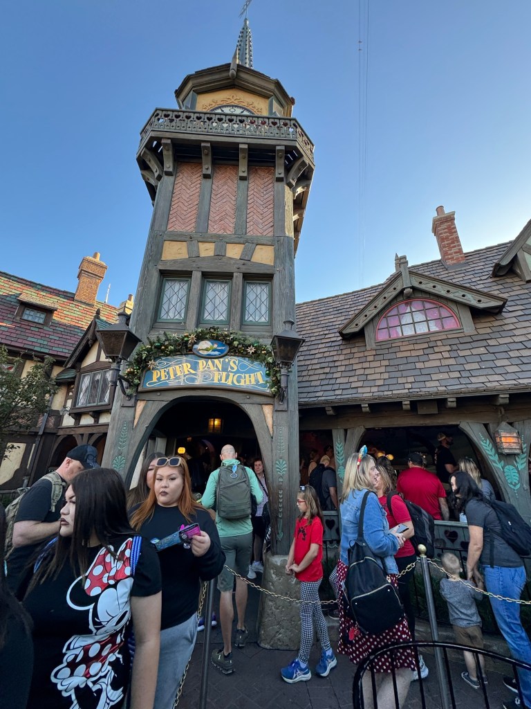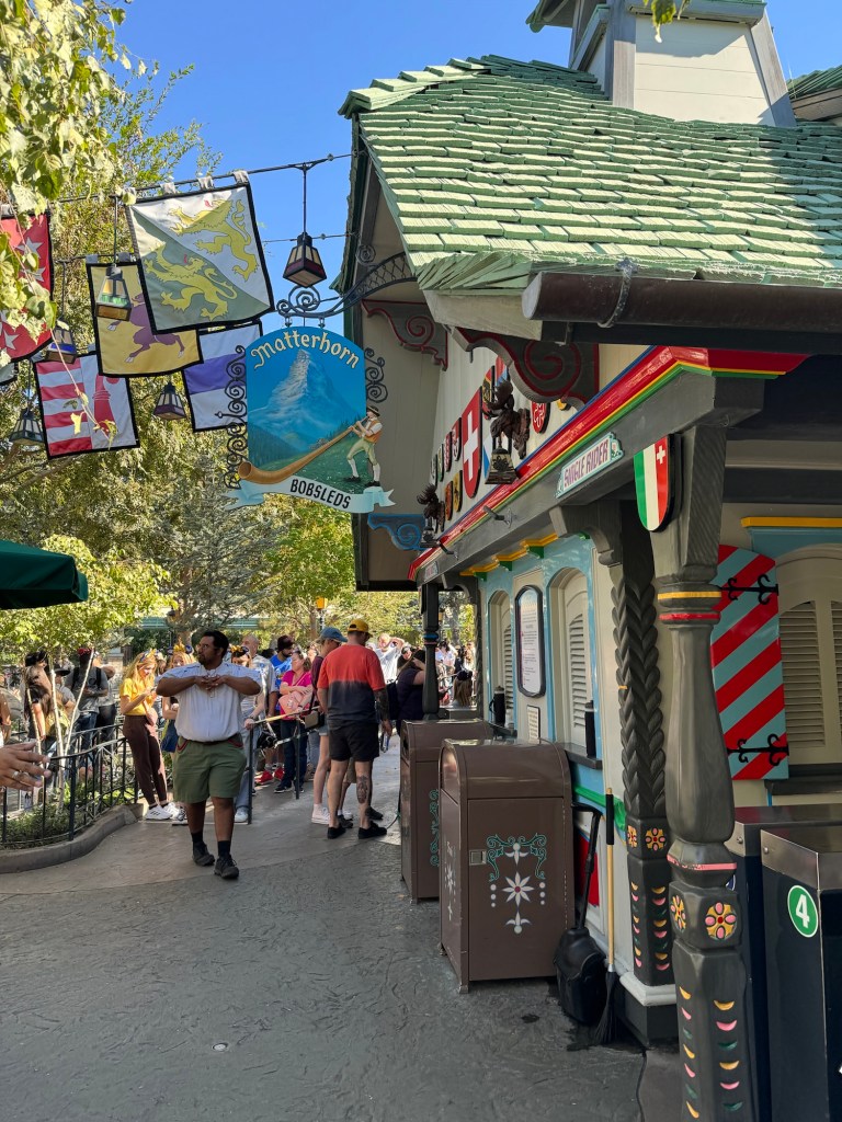 My mood did not improve. As soon as I was through the turnstiles, I had made my first Genie Plus reservation for Matterhorn Bobsleds. When I got to the bottom of the monorail station, I noticed that the reservation had disappeared off my app and the ride was down. It must have gone down just as I tried to confirm it. I made a reservation for Space Mountain, but the reservation was 45 minutes away and I headed over to Fantasyland to do Peter Pan’s Flight in the meantime. The posted waiting time was 45 minutes, but I actually waited about 30 minutes. I used this time to work on my trip report on my phone. While I was waiting in line, a multi experience pass came through. Space Mountain had gone down. I made a new reservation for Haunted Mansion Holiday. Within seconds, I got another multi experience pass. The ride had gone down, too. I made reservation for Mickey & Minnie’s Runaway Railway, which was not for another couple of hours. I enjoyed Peter Pan’s Flight and then I headed in the general direction of Matterhorn Bobsleds.