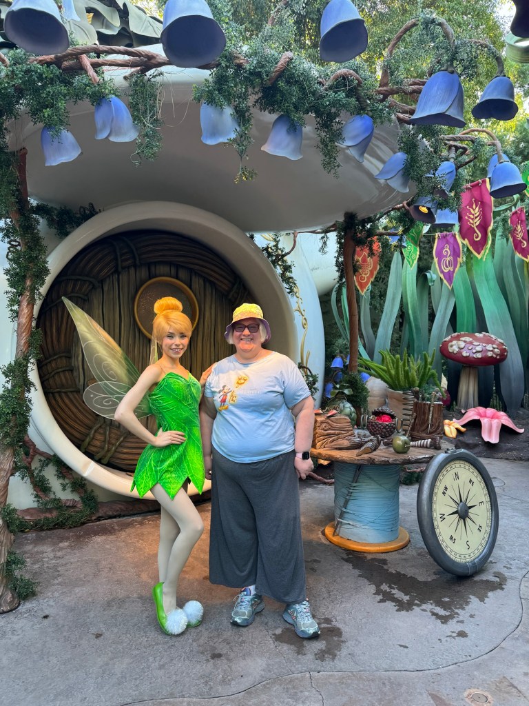 I came past Pixie Hollow and there was no visible line. I decided to stop by. On previous visits, there was always Tinker Bell in residence plus a visiting fairy. This time, there was only Tinker Bell. She did not have a Photopass photographer with her either, but a cast member took some photos with my phone.