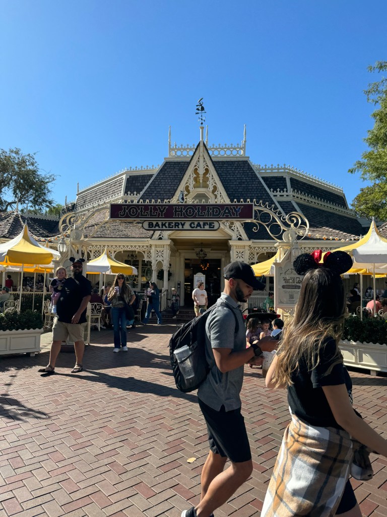 I decided to get some breakfast. On the way, I went past Buzz Lightyear Astro Blasters. The posted wait time was only 10 minutes, and this was too good to pass up. I did better that time than I had done earlier in the week. Then I headed over to Market Cafe, which is the Starbucks location at Disneyland. I got into line. Unfortunately, as soon as I had got into line, I had to leave again. I have a chronic bowel condition that is normally pretty well managed. It had given me some trouble ever since we got to California, but up to that day, it had not really interfered with my days. However, my luck had run out. I left the line and found a bathroom. I then decided to make a mobile order for a late breakfast/ early lunch. I made a couple of attempts that failed, but finally I managed to place a mobile order for an early lunch at Jolly Holiday Bakery Cafe.