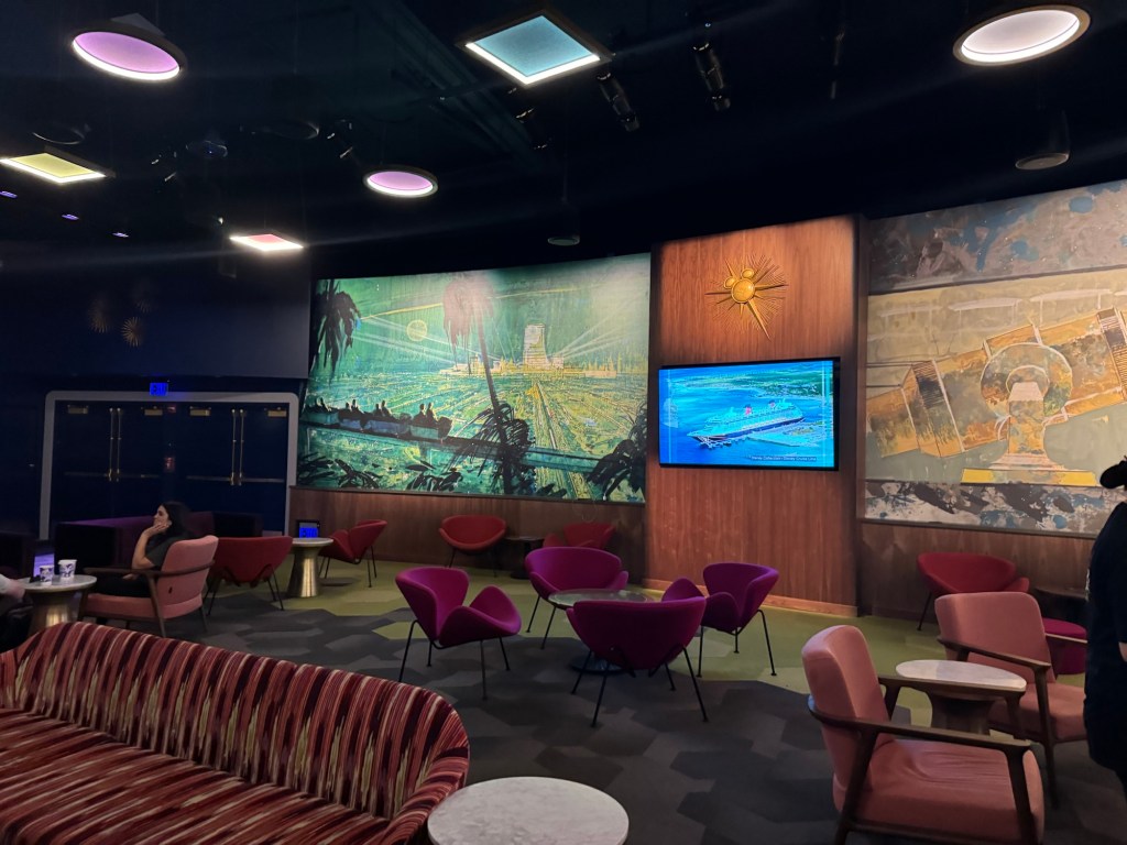 I still had some time until my window for Big Thunder Mountain Railroad was due to open. I had found out the previous day that there is a DVC member lounge in Tomorrowland, and I decided to check this out. This is in the old Carousel of Progress building. When I first visited Disneyland, this building was home to the west coast version of Innoventions. At some stage, it was mainly used for character meet and greets. Shortly after my last visit, it became Star Wars Launch Bay. I never got to experience this as this closed at the beginning of the pandemic and never reopened. Nowadays, the ground floor is used for meet and greets with Darth Vader. The top floor is now the DVC member lounge. Getting in turned out to be a bit of a production. DVC has done away with physical membership cards. I had downloaded a temporary card from the DVC website before we went to California. This was acceptable for discounts at restaurants and shops. Apparently, it was not acceptable for access to the DVC member lounge. I was asked to download the Walt Disney World app, which would then allow me to add a membership card to my wallet. This seemed silly considering I was at Disneyland. I could not get internet access for love nor money. Neither WIFI nor mobile data worked. In the end, the person manning the entrance sent me inside to a desk. There they were able to look up my membership record and on presentation of picture ID, they let me in. Ironically, as soon as I was in the lounge, I had internet access. I did download the Walt Disney World app and added the membership card to my wallet. The lounge is quite a dark space that looks rather futuristic. It does however have comfortable chairs and sofas. It also has a fancy coffee machine plus a couple of Coca Cola Freestyle machines. They also had baskets with snacks. I had a couple of different flavours from the Coca Cola Freestyle machines and some Oreos. It was nice to just have some downtime.