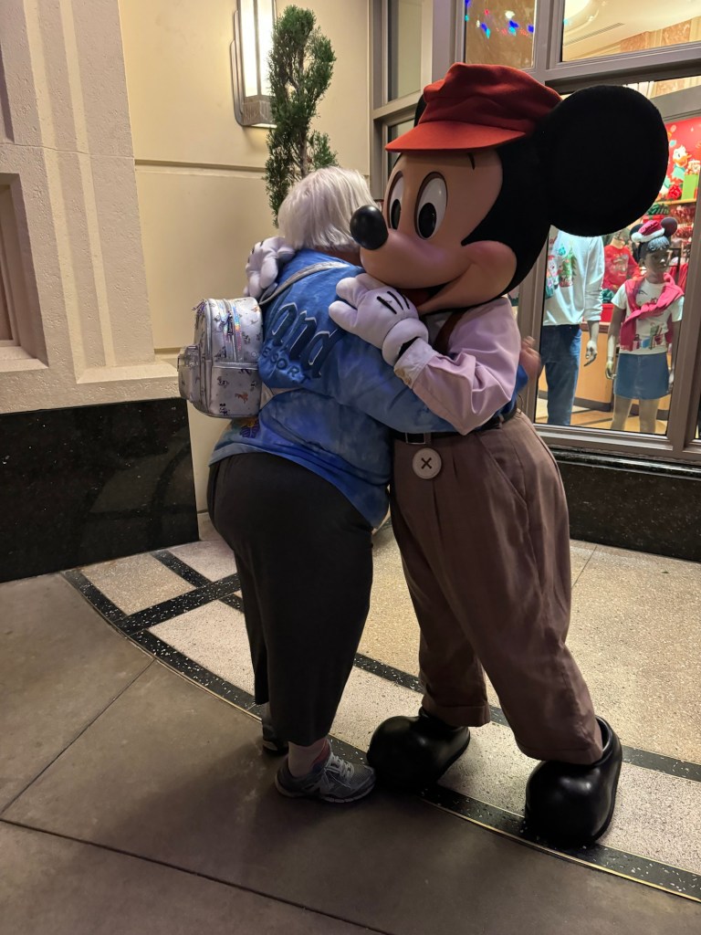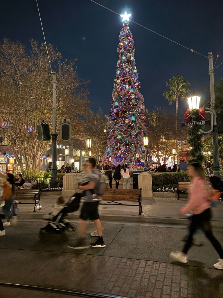 We decided to cross back over into Disneyland. As we headed down Buena Vista Street, Sue noticed that Mickey was meeting and greeting. I would have walked straight past him. While we were waiting our turn, I took a photo of the Christmas tree. I was quite surprised that there was no Photopass photographer with Mickey, but the cast member that was with him took some photos with our phones. Once we had said goodbye to Mickey, we headed out of the park. By then, the app had gone into complete meltdown mode. Sue had a Magic Band, and this was still working, but I could not access my ticket. Fortunately, I had a PDF of the original eticket saved on my phone and this worked to get me back into the park.