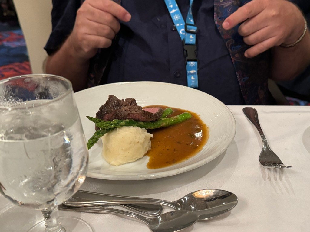 Once we had finished our drink, we headed to the dining room for dinner, we had liked our dining team the night before and I was hoping that we may have them again. However, we were taken to a different section. Our new dining team was also from India. It turned out that we only saw our server Rohan from a distance that evening. He had a large family group in his section, and they were nothing but demanding. However, we were very well looked after by our assistant server Winston. He was definitely ready to go up to server. He was friendly and attentive, and we felt well looked after.