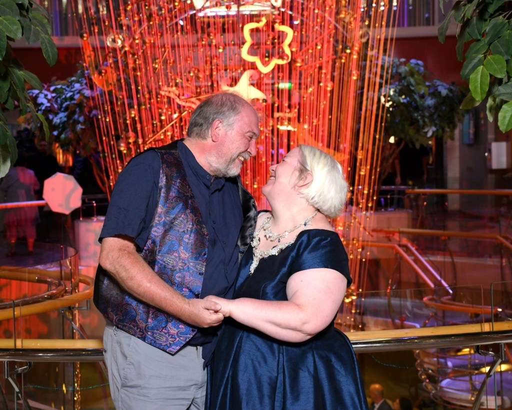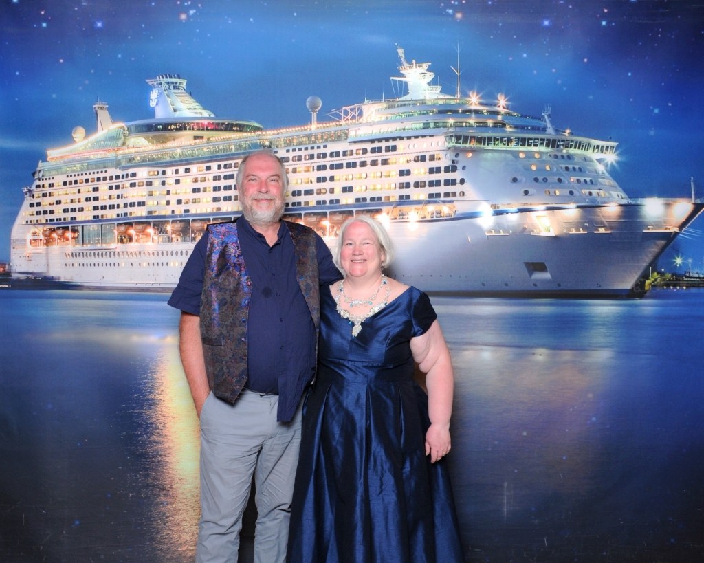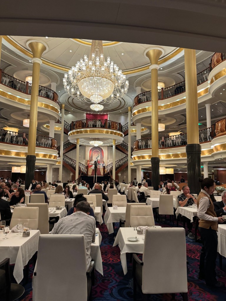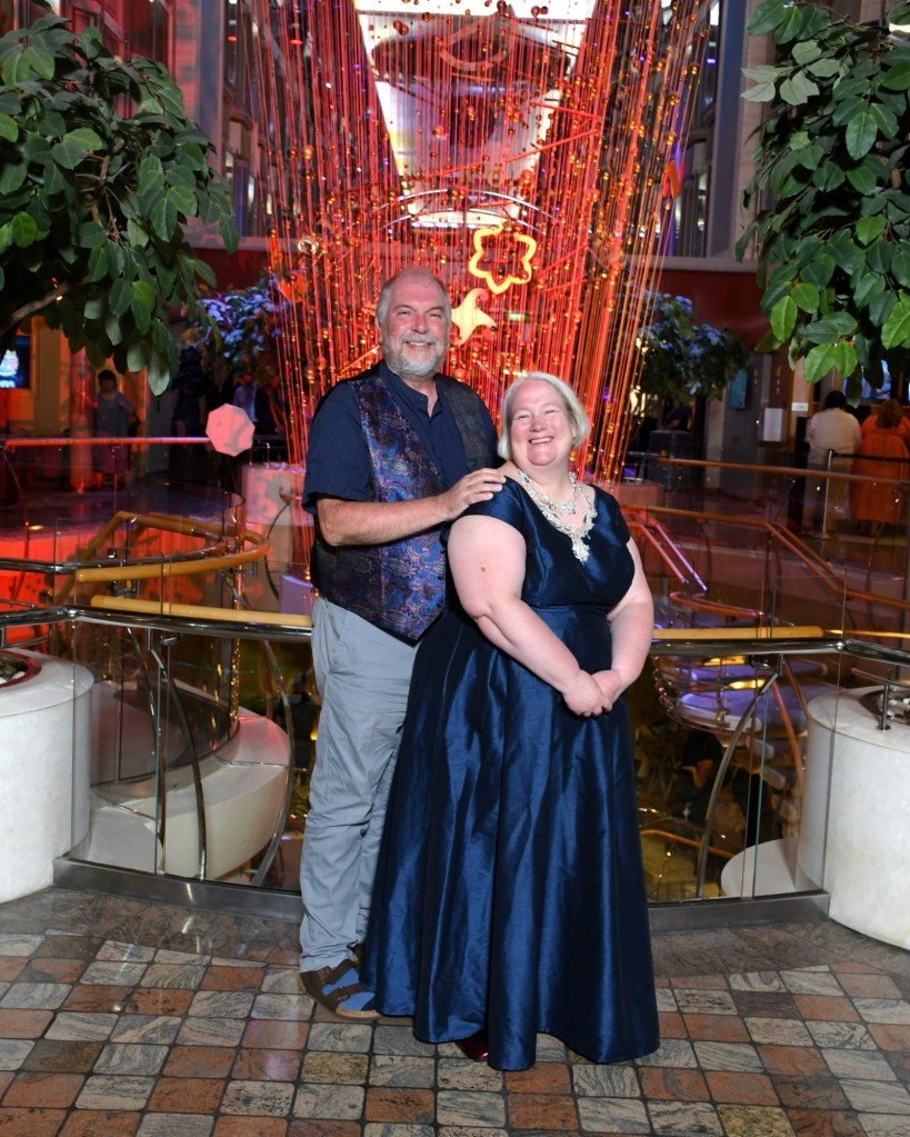 After dinner, we made the rounds of the photo opportunities. This was a dire disappointment. Normally there are lots of different photo opportunities on formal night. However, that evening they had one backdrop plus photos in front of the hanging sculpture and on the stairs. Neither of us is particularly keen on stair photos. We passed on this. If I had paid for the photo package rather than using non-refundable on-board credit for this. I would have asked for a refund. Fortunately, things got better from this point onwards and in the end, I had plenty of photos.