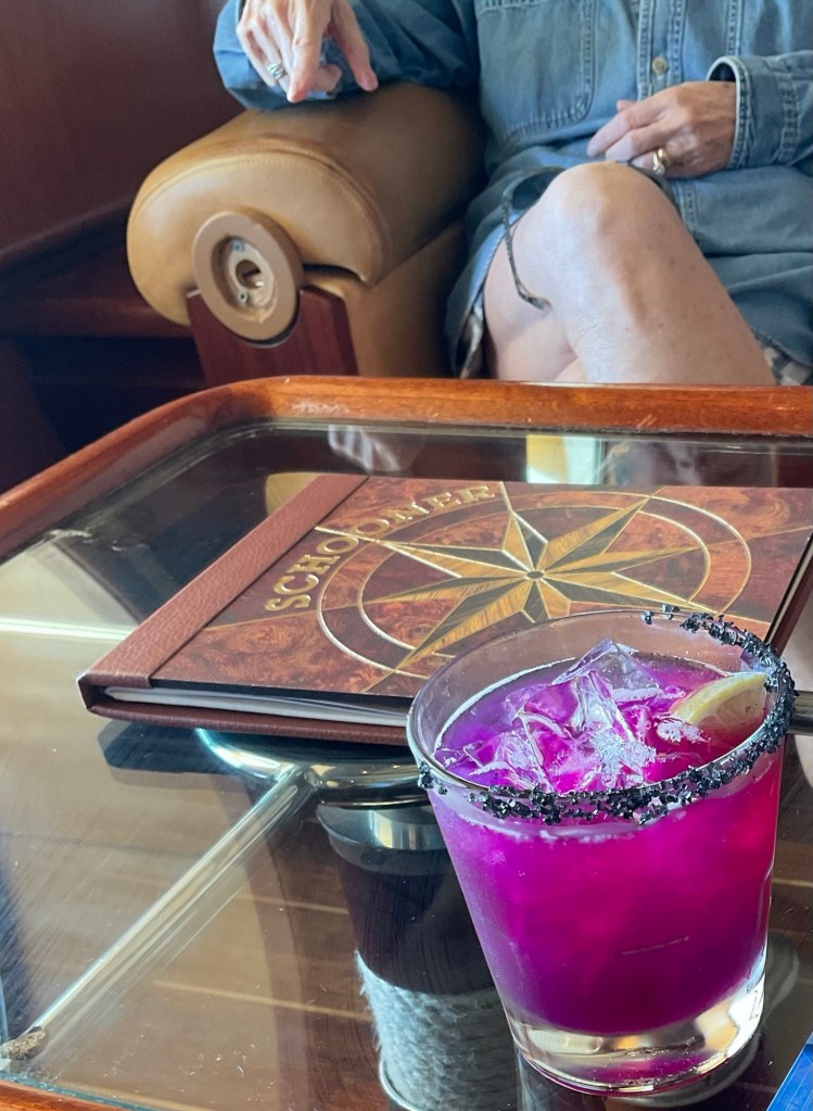 Once we had finished our coffee, we headed downstairs to the Schooner Bar for true or false trivia. This is not a favourite of ours, but we had no other plans, and it would while away 30 minutes or so. This was when we met the first member of our trivia dream team. During the cruise, we teamed up with some other cruisers that also loved trivia. The Schooner Bar was always packed for trivia, so it made sense to team up and it was nice to see some friendly faces every day. We had managed to get some seats by the window and Carol asked if she could join us. We did not mind some company. This was not the typical true or false trivia that Royal Caribbean offers. You did not only have to guess true or false, but if the answer was false, you then had to provide the correct answer. This was not one of our finer hours. We only got 11 out of 25 with the winning score being 22. Still, it is the taking part not the winning that counts. On a positive note, not only did we make a new friend, but I also found a new favourite drink. Normally my go to drink at the Schooner Bar is the lavender daiquiri. However, for some reason, I decided to browse the menu that day and spotted a dessert pear margarita. I decided to try this, and it was absolutely delicious. I have already checked out if it is available on Radiance of the Seas, which will be our next ship. Fortunately, it is on the menu there, too. I shall have a few more of those in May.