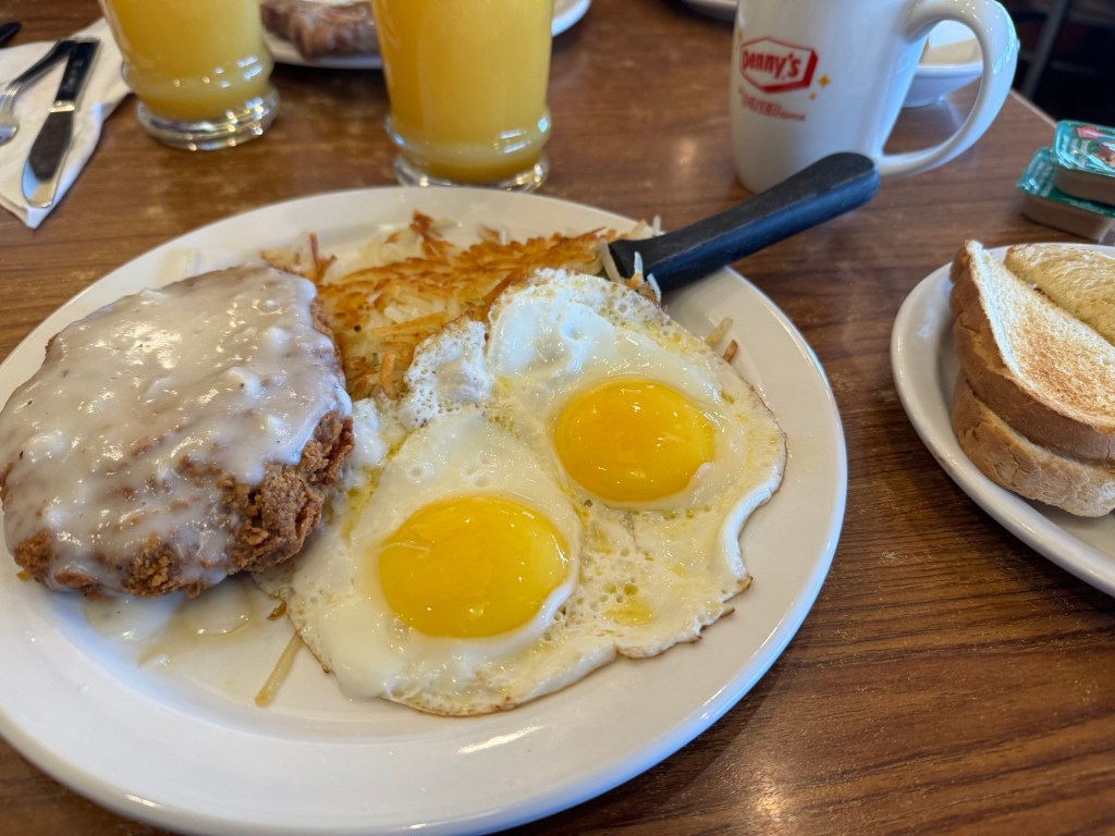 They seemed to be steady business, but we had no issue getting seated. The other people in the restaurant all seemed to be locals and I wondered if we were the first tourists they have seen. This location was definitely off the beaten track. I struggled with the menu a little. There was just too much that looked good. In the end, I decided on the country fried steak with fried eggs, hash browns and sourdough toast. This came with peanut butter. Graham knew straightaway what he wanted. He went with the T-bone steak, hash browns and fried egg, which also came with sourdough toast. We both had coffee, which was very nice and some orange juice. This hit the spot.