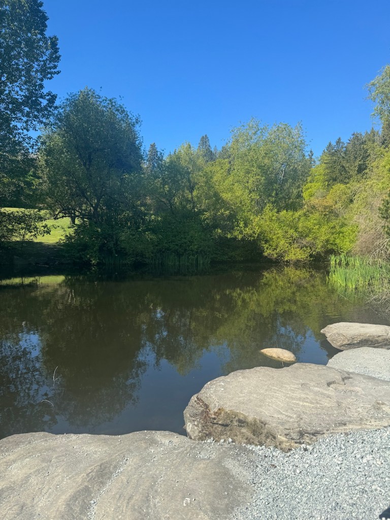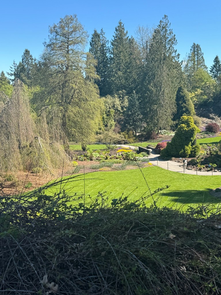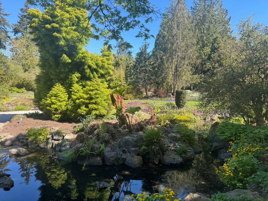 When we had finished our breakfast, we headed to the closest Skytrain station. This was one stop further from the centre. A train arrived just as soon as we got to the platform. Even with being one stop further down the line, it was only four stops until our interchange stop. We then had to take to the buses. The bus station was right opposite the exit from the station. The bus we needed was already there, but the driver was on a break. About five minutes later, we were on our way. Google Maps had led me to believe that it was a bit of a walk from the closest bus stop to our destination, Queen Elizabeth Park. However, when we got there, Queen Elizabeth Park was right opposite the bus stop. I suppose they measured the distance to the main entrance, which is the opposite side of the park. We walked uphill through a woodland and then reached the duck pond. This was one of the areas Graham wanted to visit. Apparently, this is a good place to see hummingbirds, which kind of surprised me as there plenty of trees in the area, but no flowers. We were out of luck as far as hummingbirds were concerned, but there were plenty of teal on the pond as well as some seagulls. The main attraction however was a pair of western tanagers. They are beautiful yellow birds, and they were quite entertaining flying backwards and forwards between the two banks of the duck pond.