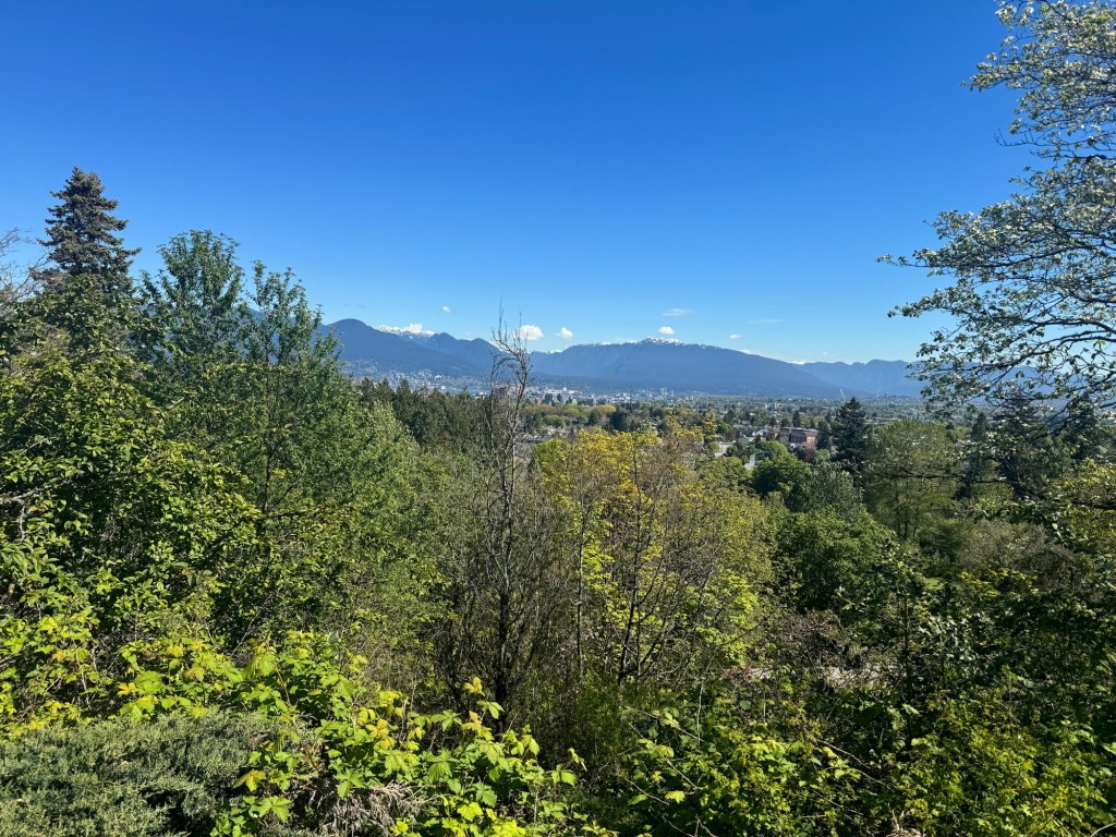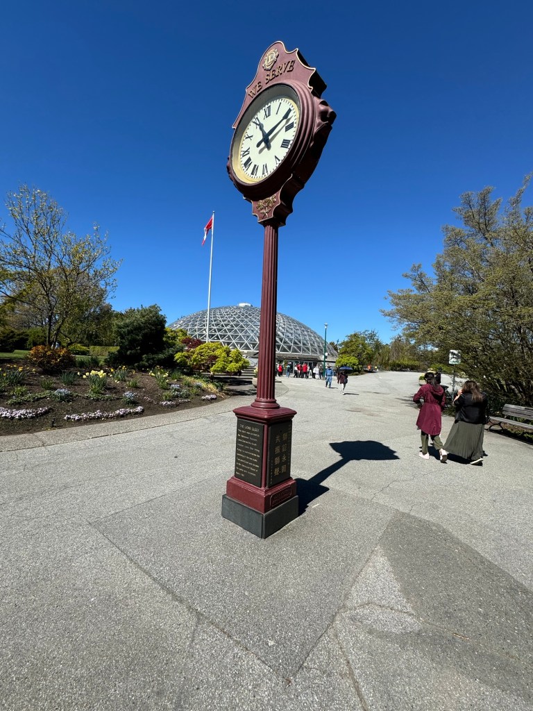 From the quarry garden, we went further uphill and reached the highest point of the city of Vancouver. There was a lookout with some beautiful views as well as a gorgeous antique clock. The main attraction for us was also in this area, the Bloedel conservatory. Whereas the Queen Elizabeth Park is free, there is an admission fee for the Bloedel Conservatory. However, from our perspective, this was money well spent.
