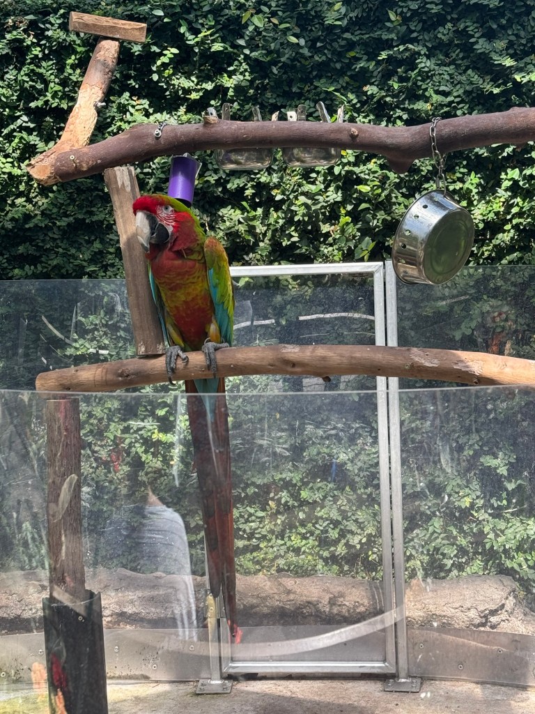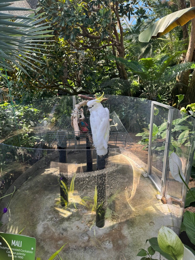 While we were sitting here, we saw the first bird that was not in an enclosure. It was a Lady Amherst’s pheasant. They are very pretty birds. When I worked in a boarding school in Buckinghamshire, we would occasionally see them around the village. Suddenly there were free flying birds everywhere. I am not sure if my eyes adjusted to them or if they had got used to us and were coming closer. We also saw some more parrots and cockatoos in various enclosures.