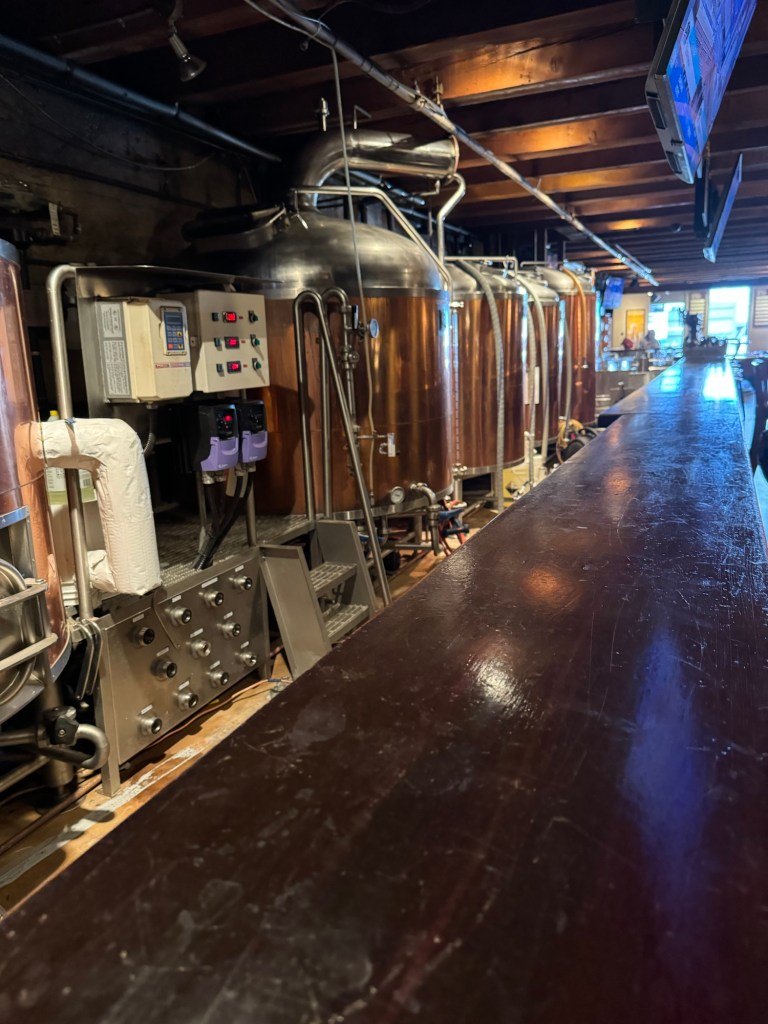 Absorbing all this history is thirsty work. We headed across the car park to our first stop. Steamworks is a brew pub and microbrewery. We were seated in the basement, which is where the brewery is located. We were given a choice between a lager, their flagship IPA and a non-alcoholic option. I am not really a beer drinker, but if I visit a brewery, I try their beer. We both went with their flagship IPA, which was also Rachel’s recommendation. It reminded me of one of the IPAs that a local craft beer brewery here in Manchester makes. They call theirs Juice Springsteen and it contains all kinds of tropical fruits. My tastebuds did not deceive me. This had the same ingredients.