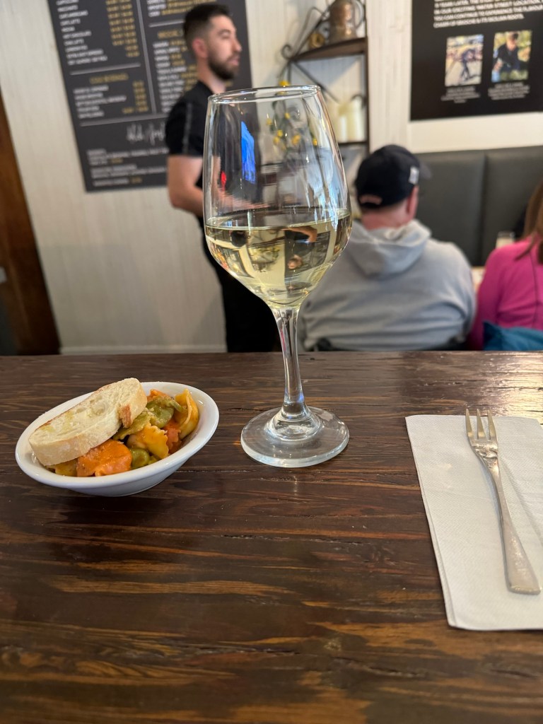 Our next stop was Brioche Ristorante. Apparently, this is a great spot for brunch. We were too late for this. We sampled their Sicilian Tortellini with homemade bread. We also had a choice between an Italian white wine, red wine or a non-alcoholic option. We both had the white wine. The wine and the food were delicious.