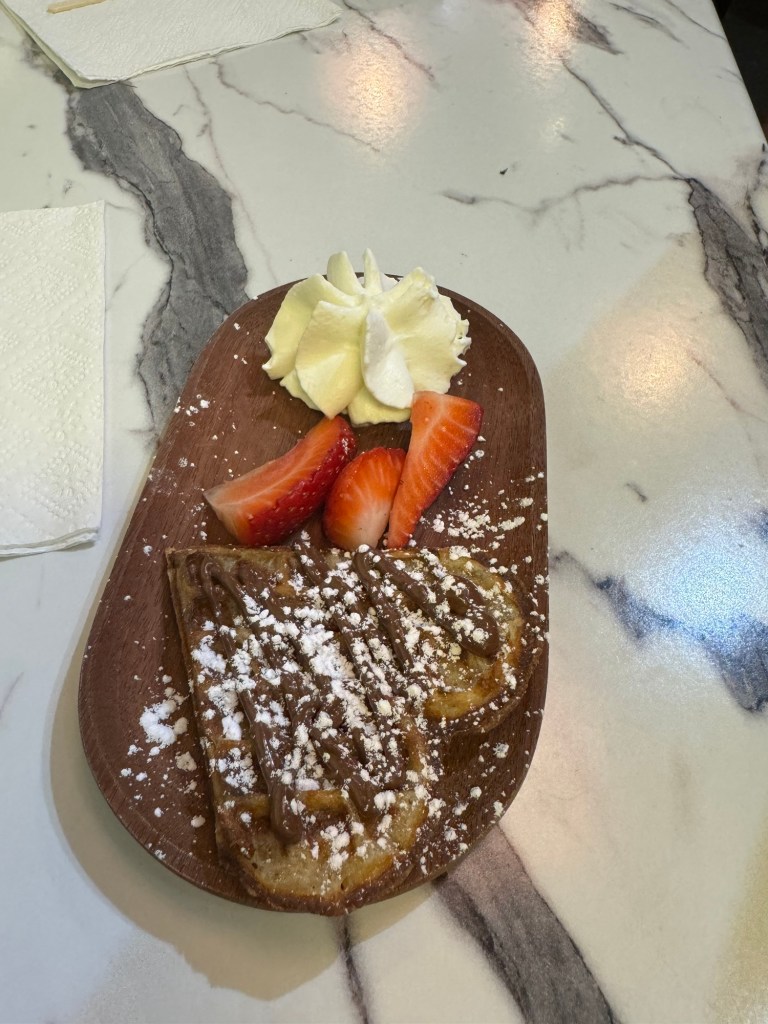 Our final stop was Waffleland Cafe. This is another popular brunch spot. They specialise in both Belgian and Norwegian waffles and offer a huge range of sweet and savoury waffles. We had Norwegian waffles with cream, fresh strawberries and a gorgeous chocolate sauce. Graham had his own version minus the chocolate sauce. Waffleland Cafe is also really quirky venue. It kind of looks like a secret garden. Rachel also told us that the owners are huge Disney fans.