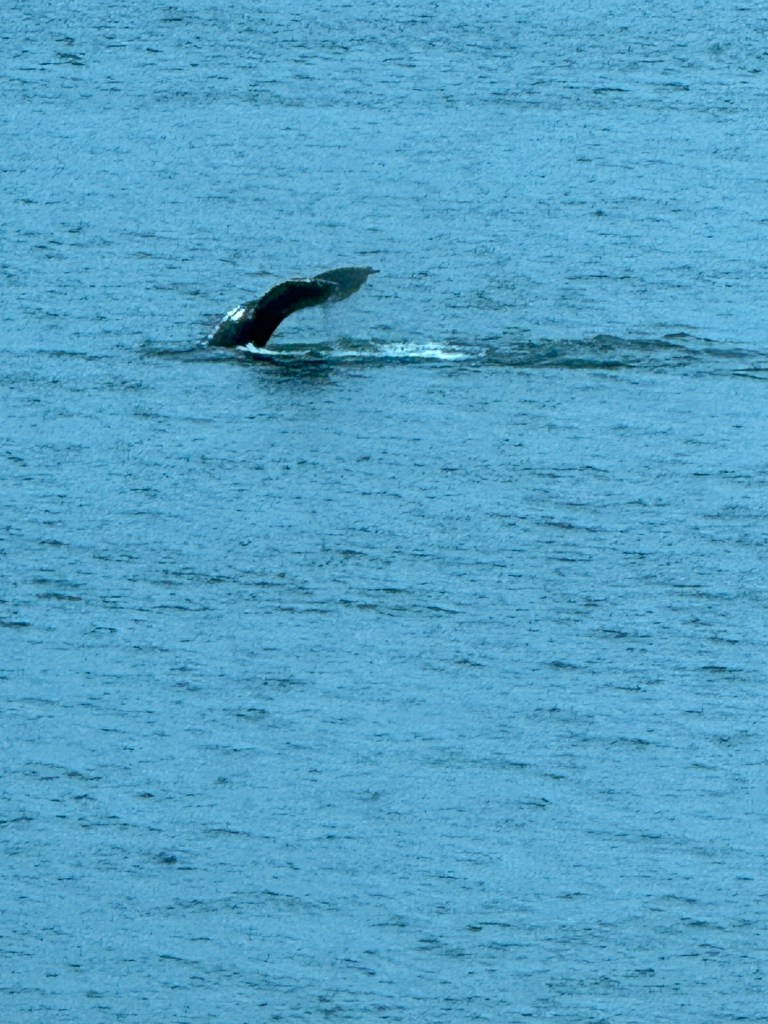 After lunch, we headed downstairs to the Schooner Bar. We found a table by a window. It did not take very long until there was whale activity right in front of us. We kind of lost count of how many whale sightings we had. It was utterly amazing. We worked out the pattern between the whales surfacing and them going for a deep dive. I managed to get quite a few tale shots in process.