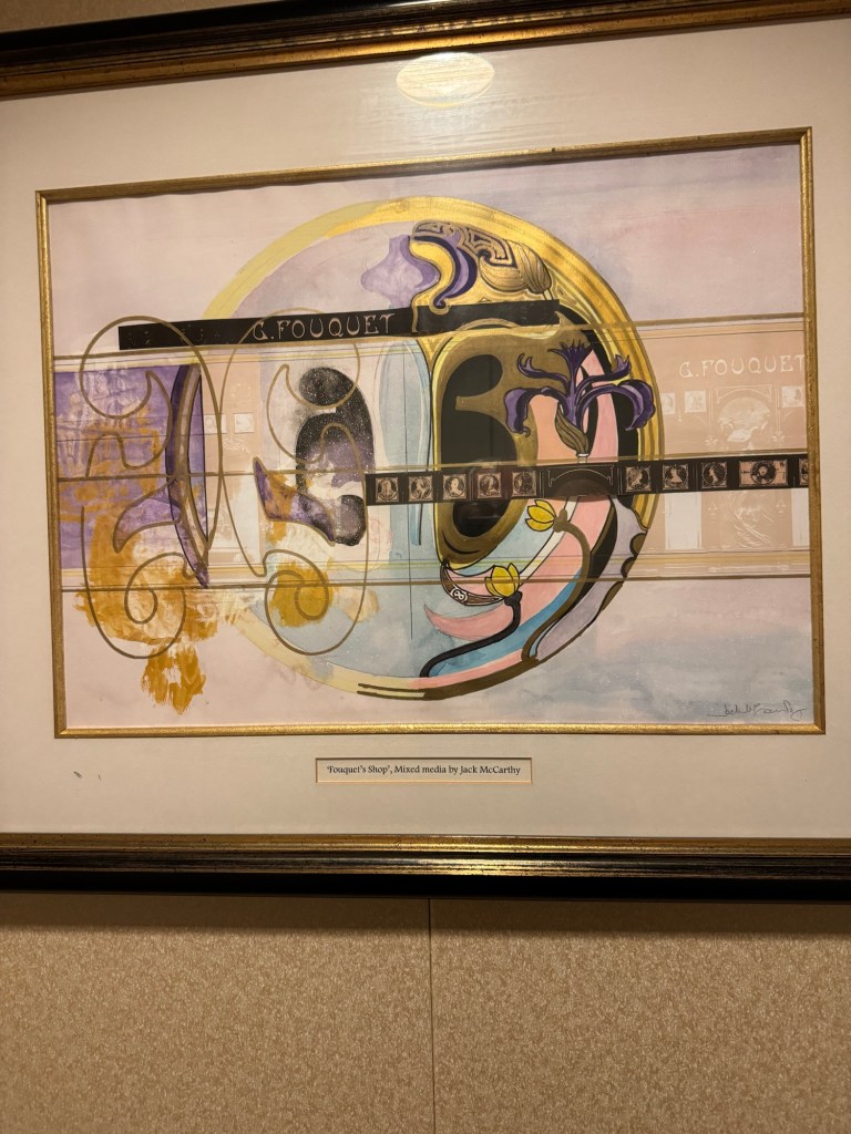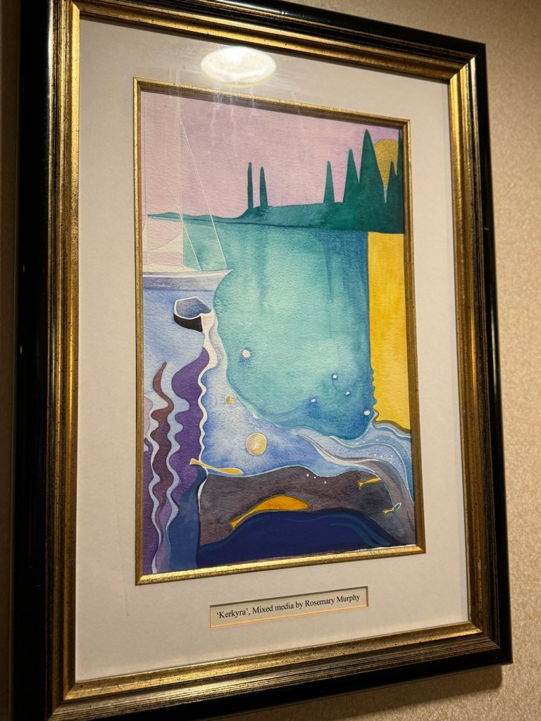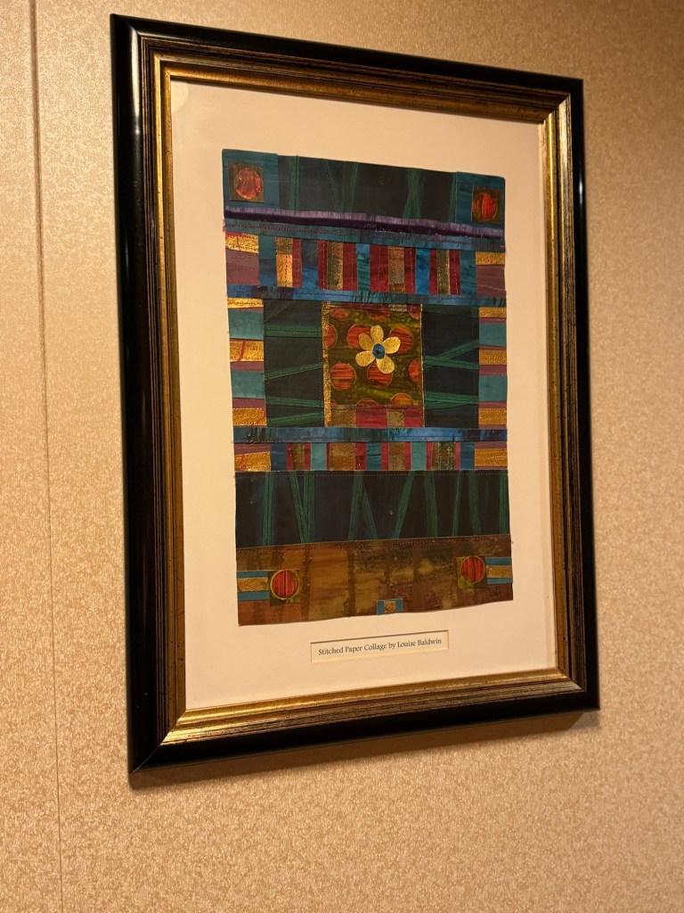 After dinner, we checked out the artwork on decks 10 and 9. There were some beautiful watercolours, some mixed media art and a lot of handmade paper. I took a few photos. Once we had completed the two decks, we went back to our cabin and got ready for bed.