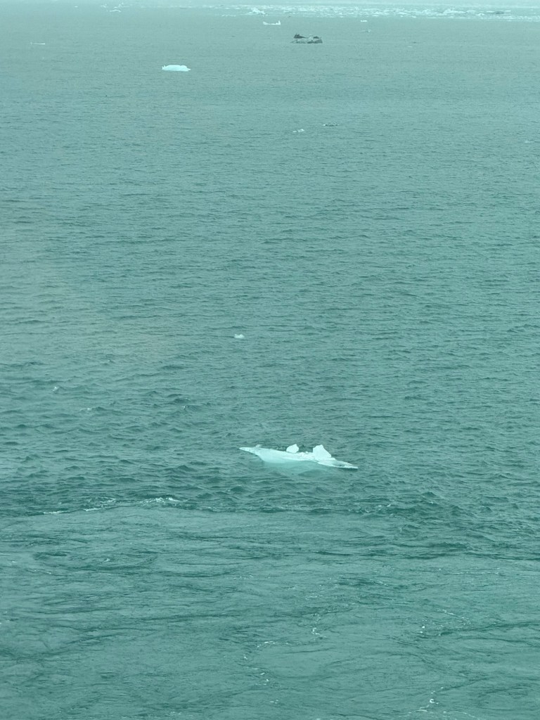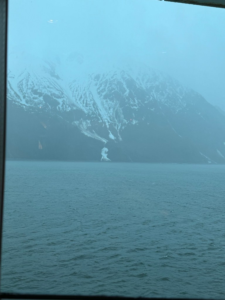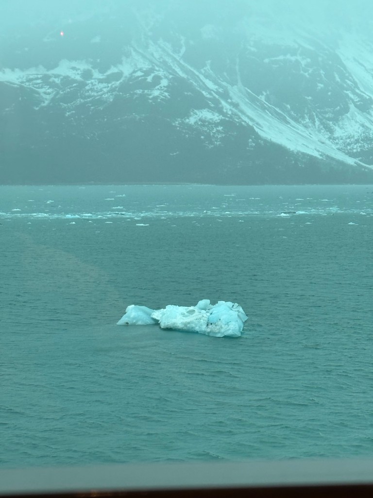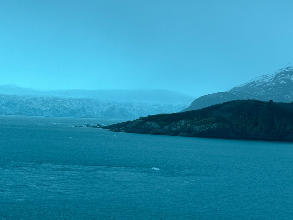 Just like this, the first cruise was almost at an end. This was our glacier viewing day. The glacier on this cruise was Hubbard Glacier, which was new to us. There was some speculation that we would not be able to get close to the glacier due to fog and ice near the glacier. In the end, it was raining heavily, but there was no fog and there was not a great deal of ice.