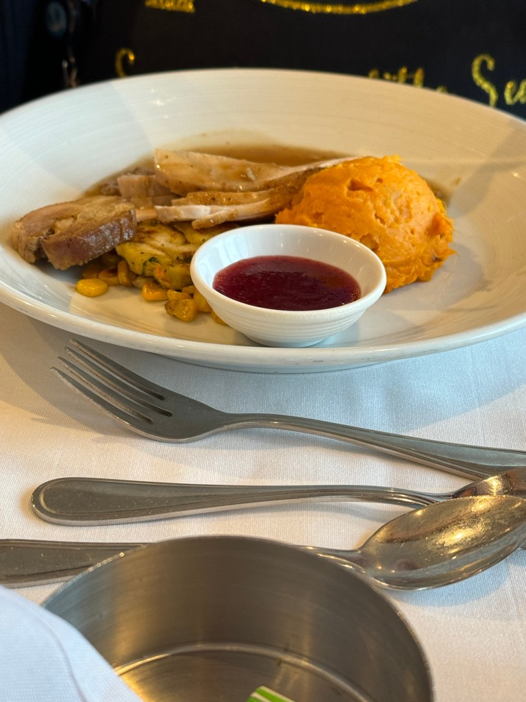 My favourite casual lunch dish on Royal Caribbean is the roast beef kümmelweck. This not available on Voyager or Freedom class ships, but is served in the Cafe Two70 on the Quantum class ships and in the Park Cafe in the remaining classes. This normally hits the spot, and we usually have this a few times every cruise where this is on offer. I was actually surprised that it took us nearly to the end of our first cruise to have this. Well, it was once and done for this cruise. The beef lacked flavour and roll it came in could have been fresher. What we had with the roast beef kümmelweck however was a definite hit. Before cruising shut down, there was something called the tutti salad. This was offered in one of the dining rooms on sea days and was a salad bar with every salad vegetable known to humankind as well as a huge selection of proteins, toppings and dressings. You picked your ingredients and the chefs manning the area would turn it into a salad for you. I used to love this, but sadly this never returned after the restart. They did however have a mini version of this at the Park Cafe. They had about 10 different salad vegetables, two proteins, a couple of toppings and 3 or 4 types of dressing. Even with the smaller selection there was plenty to choose from and this was delicious. I realised the second week that they had a DIY version of this in the Windjammer with a slightly larger selection. After this, my lunches became a lot healthier.