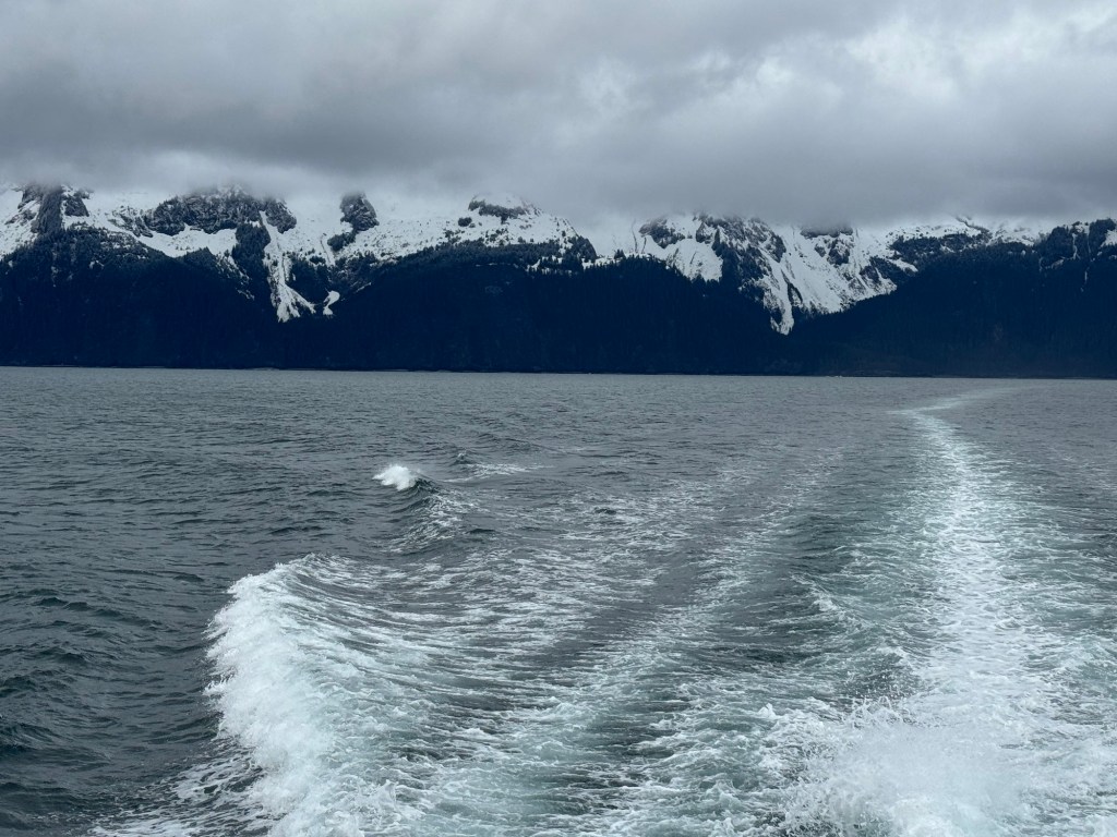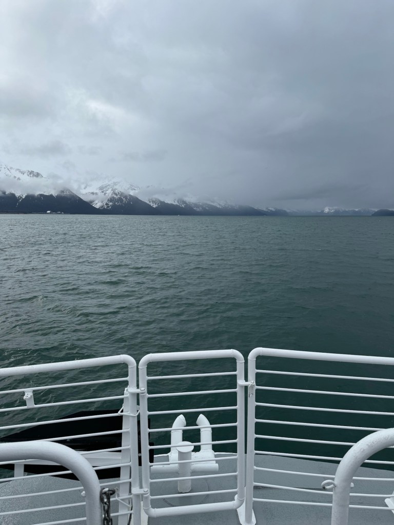 It was not long after we left the dock in Seward that we had our first whale sighting. There was a small group of humpback whales. We stayed with them for a while and then we moved on. At some stage, Graham had headed to one of the outside decks and after a while, I joined him . It was pretty chilly out there and after a while, I headed back inside.