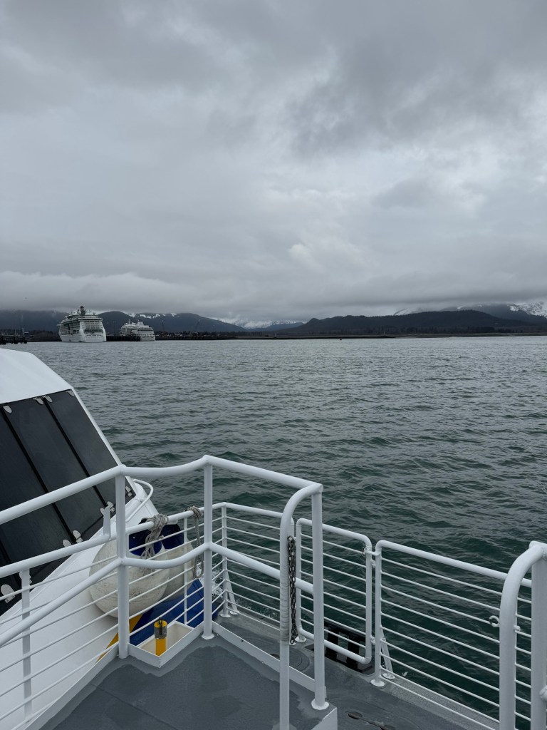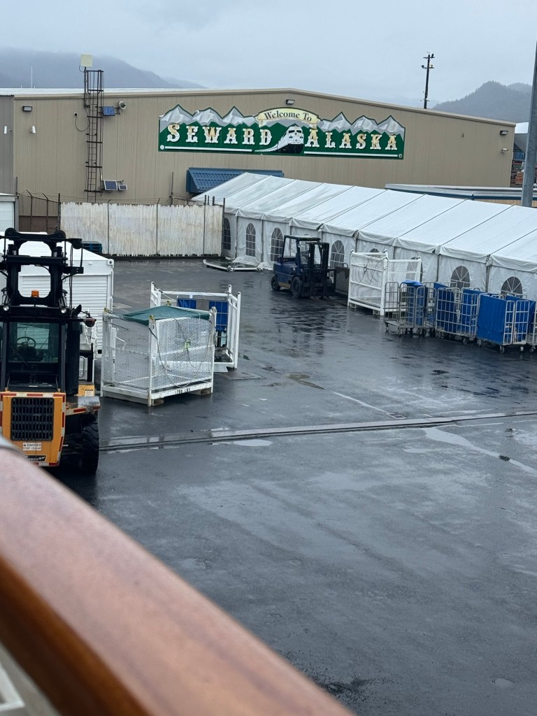 When we switched from Disney Cruise Line to Royal Caribbean, one thing that really struck us was the difference in how shore excursions were handled. On Disney Cruise Line, the process was often a shambles whereas the shore excursion department on Royal Caribbean was a well-oiled machine. Well, somebody on Radiance had not got the memo. I am not sure if this was Royal Caribbean’s fault or the local tour operator’s fault, but it was not pretty. We were still in the theatre quite a while after the intended departure time. At some point, they made an announcement advising that they were waiting for our buses to arrive. A short while later, there was an announcement that the buses were now ready for us. We were asked to assemble at the back of the theatre and then were escorted downstairs. We were met outside the ship by representatives of the tour company. I could understand why they wanted to avoid us to hang around the terminal as essentially it is just a small warehouse. Apparently Royal Caribbean is heavily investing in the port facilities being expanded currently. Anyway, the idea to keep us on the ship until they were ready for us was a good one, but not one that worked. We were walked over to the terminal and lined up pretty much to in the centre. Representatives from the tour company came by and collected their half of the ticket. They also tagged larger pieces of hand luggage as those would be stored at their office. Then we just stood and waited for the best part of an hour. Eventually the buses really did arrive, and we were directed to our bus. Ironically even without the waiting time, it would have probably been quicker to walk as the marina where were leaving from was pretty much opposite the port and there was a footpath. The road however took a long way round. When we arrived at the other end, we waited some more before we were able to board the boat. If I had booked the tour with the drop off at Anchorage airport, I would have been seriously worried. I knew having booked the tour through Royal Caribbean, worst case scenario, they would have to wait for us.
