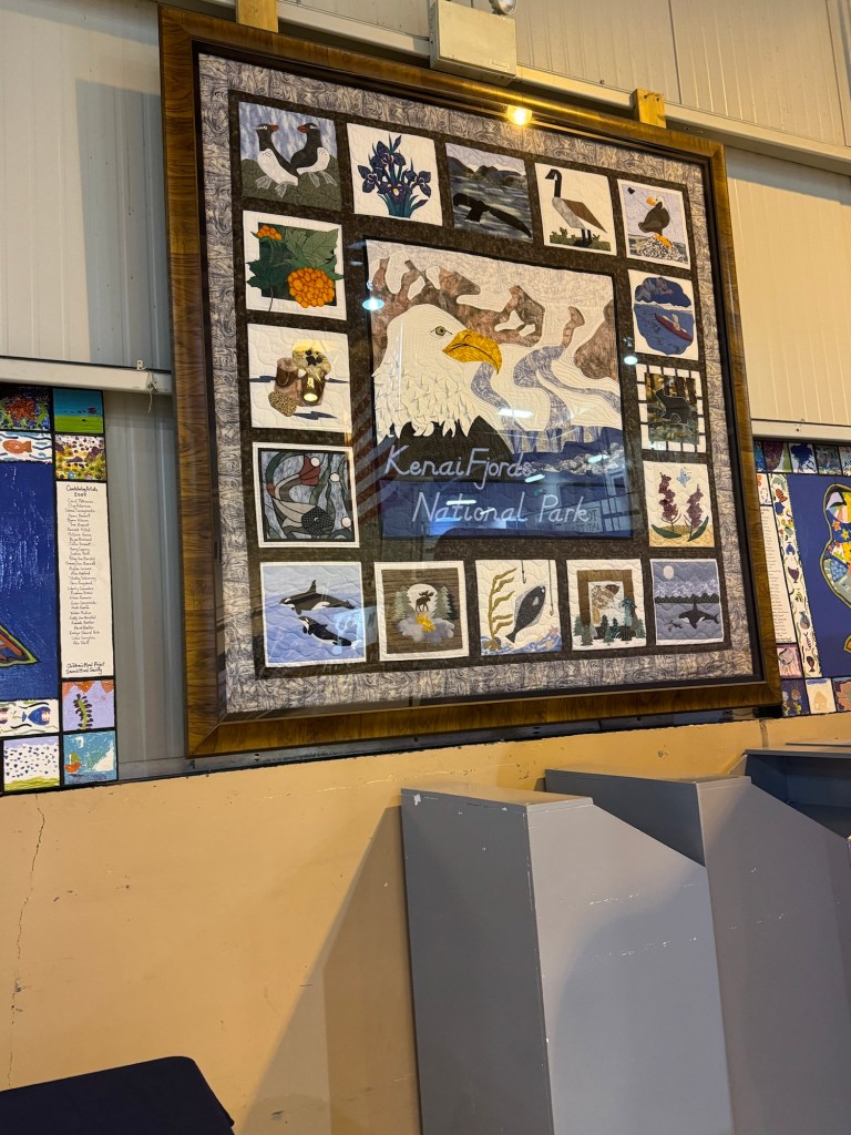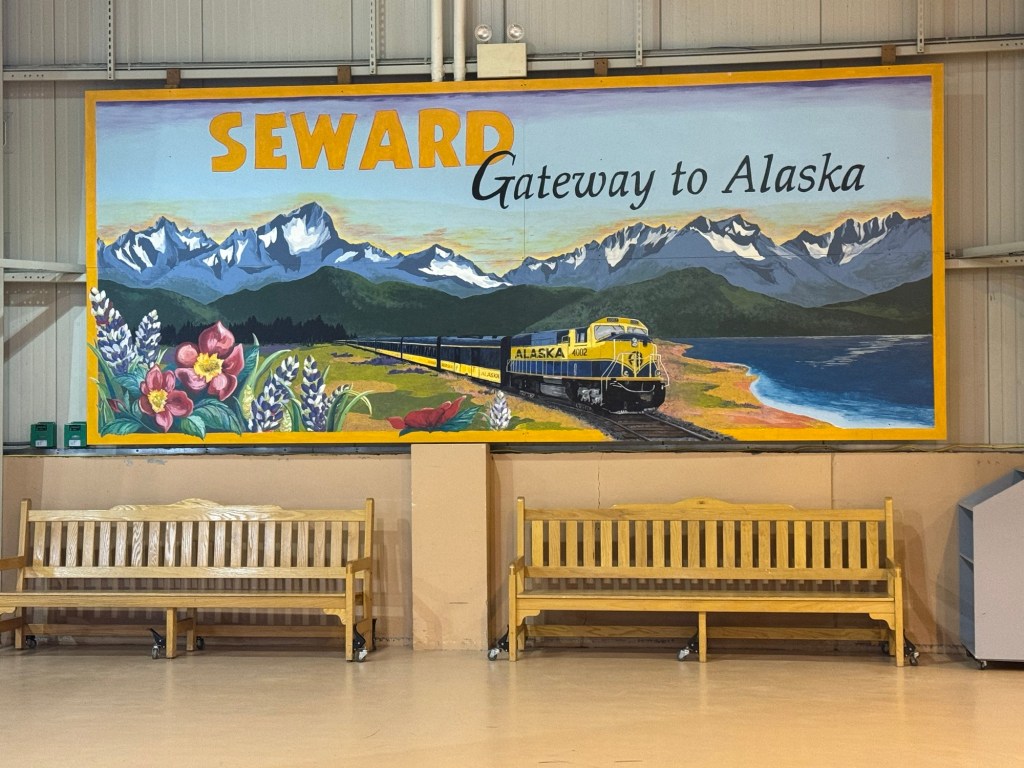 We had a tour booked to the Kenai Fjords National Park that Royal Caribbean was offering for back-to-back cruisers and for people with late evening flights. Once we had completed the check in process, we headed up to the theatre, which was the meeting point for the excursion. We checked in with a member of the shore excursion team outside the theatre. She checked our tickets and then we were sent inside. There, one of her colleagues gave us our stickers and sent us to a section of the balcony. We were among the first people there, but the area soon filled up. It seemed that a lot of people had not read the back-to-back letter and had not checked in for the second cruise. Soon there were announcements asking people to check in for the second cruise if they had not done so already. I was kind of surprised by this because when we spoke to the person outside the theatre, she had asked up if we had been to guest services to check in.