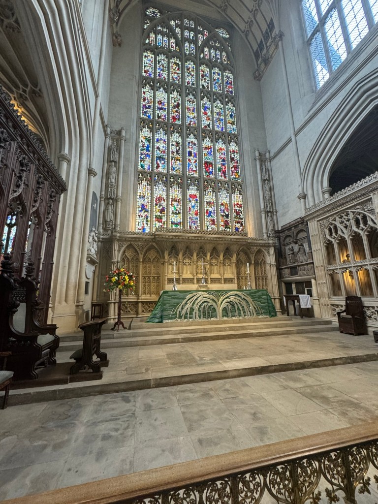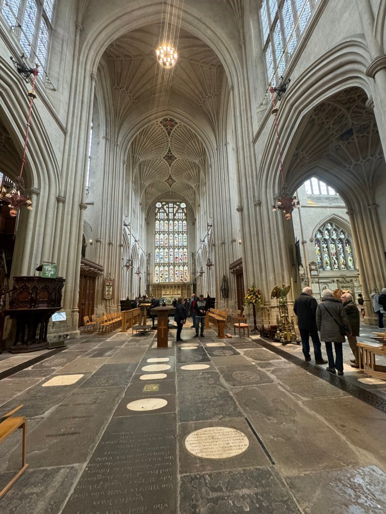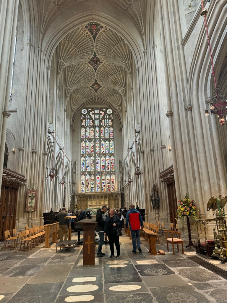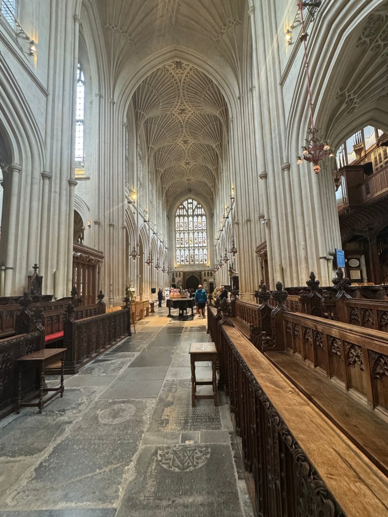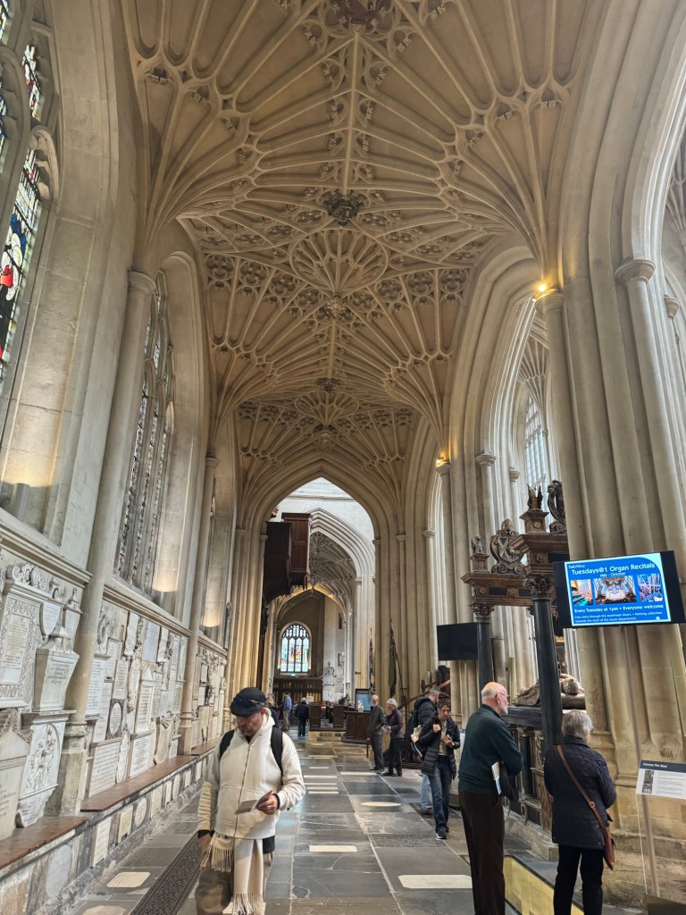 I had visited Bath many years ago when Graham had a contract there. At the time, I was not too impressed. However, this was in the middle of summer and the place was terribly crowded. Bath in October is a different proposition. I really rather liked what I saw. Having a local tour guide was a definite bonus. We passed by the Roman Bath but went inside Bath Abbey. I paid the admission for both of us, which was the least I could do. This is such a beautiful church with some really interesting architectural features. I was glad that I had the chance to visit.