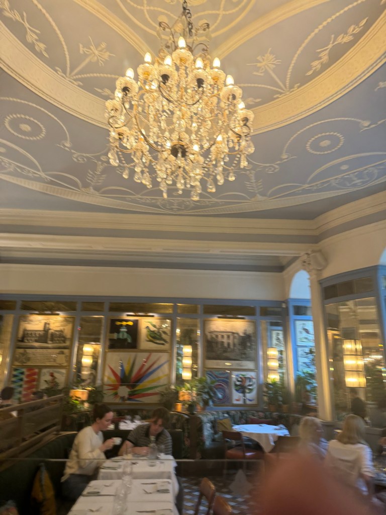 We had a reservation for the Ivy Brasserie and Garden. I had not made the connection that this was part of a chain that started in London and now has restaurants all over the UK. We have one right here in Manchester. This was not a place I ever would have considered eating at, and this was grave mistake. The one in Bath is a beautiful restaurant and the service was very attentive. We were seated, they took our coats and then we were handed a whole battery of menus. They had two different set menus as well as the a la carte menu.