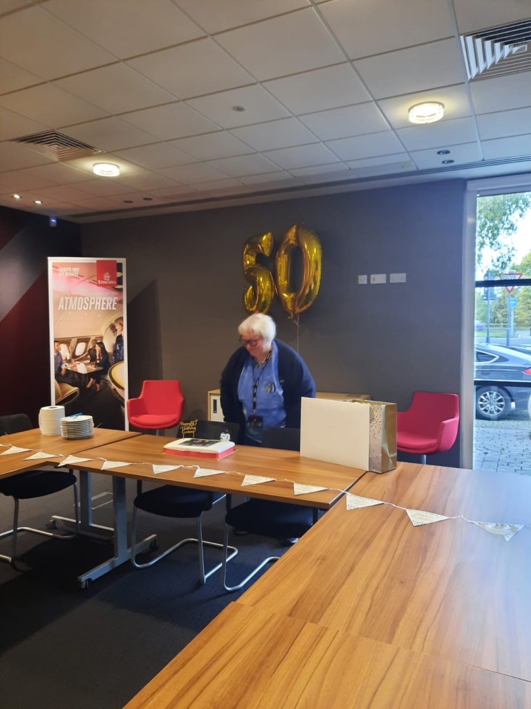 This was not the end of the surprises. I got called into the board room under some kind of pretext in the afternoon where our leadership team was waiting for me with a photo cake, an amazing, personalised card, helium balloons and presents. I got a pamper kit, a beautiful necklace with one star for every decade and a custom birthday t-shirt that my colleagues made for me with the ship and the itinerary on it. I also got some spending money for New York. My manager got me a beautiful wooden wall ornament with Disney characters. Unfortunately, as I was heading straight to the airport, I could not take most of this. I left the goodies with one of my colleagues for safekeeping until my return. I did however take the shirt and the spending money.