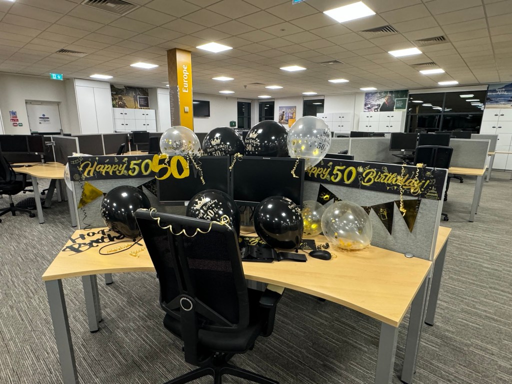 I had a bit of a surprise when I came to work that day. My desk had been decorated for my upcoming big day with banners, bunting and balloons. I was raised with the superstition that if you celebrate your birthday early, it is very bad luck. I therefore had kind of hoped that my last day at work before the holiday would be a day like any other. However, the desk looked so pretty, and I did appreciate the sentiment. I did end up taking the fabric banners with me. I figured they would look nice in the cabin.