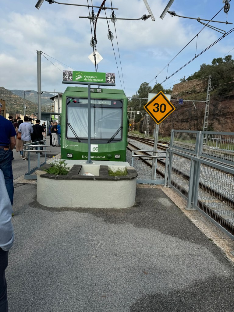 Unfortunately, we had just missed a train. It is an hourly service. We both used the bathroom and then headed down to the right platform. There were seats there. The rain arrived pretty early, and we got on. This meant that we had our pick of seats. The trains on this route always seem to be busy. The train left on time. I worked on my trip report during the journey. The train took an hour to get to Monistrol de Montserrat, where we had to change to the rack railway. This was already waiting for us. We just got on and shortly afterwards we made our way up the mountain.