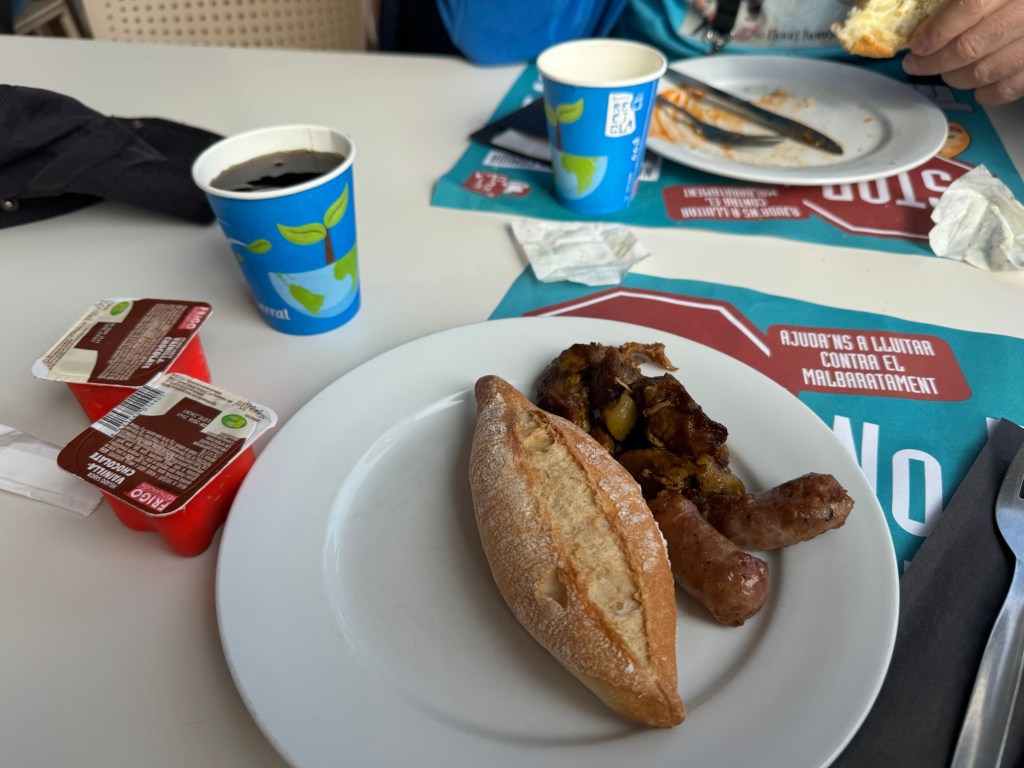 When we arrived at the top, we decided to go straight for lunch. This turned out to be a wise decision as multiple tour groups arrived as we were leaving. I have eaten at the buffet on every visit to Montserrat. There is a good selection of food and for one moderate price, all food and drink including wine and beer is included. Not only is the food nice and it is great value and convenient, but the views are amazing. Graham was healthy and had a first plate of Salad and bread and a second plate of rice with vegetable sauce, baked potato, and fish fingers. I was not particularly healthy and had fries, sausage, bean stew with pork, marinated pork, and chicken croquettes. I went back for some more sausage, marinated pork, and a crusty roll. I also had some vanilla and chocolate ice cream. I am not much of a beer drinker, but I am quite partial to the local beer Estrella. The had this on tap. Unfortunately, you had to help yourself. I ended up with more foam than beer. I stuck to Coke after that. Graham had water.