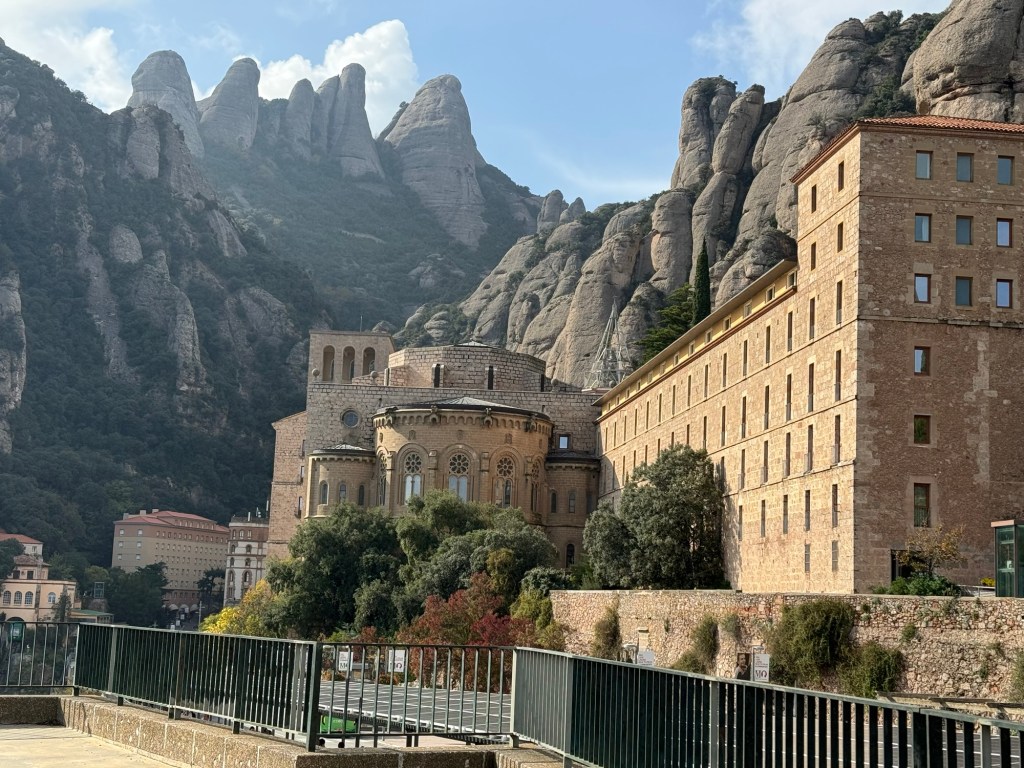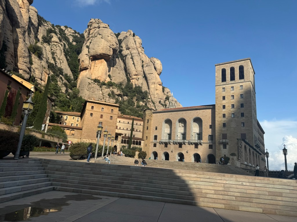 Once we were reunited, we headed back to the rack rail station. When we got to the bottom, I had time for a quick photo of the mountain before our train arrived. The train was really busy. Most people who got on at the station for the rack railway got a seat, but the people who had connected from the cable car ended up standing. We had a smooth journey back to Plaça Espanya. I napped for a good chunk of the journey. We did find that there was a connection between the train station and the metro station underground. We got tangled up with the rush hour and let two metros go before one came that had some space.