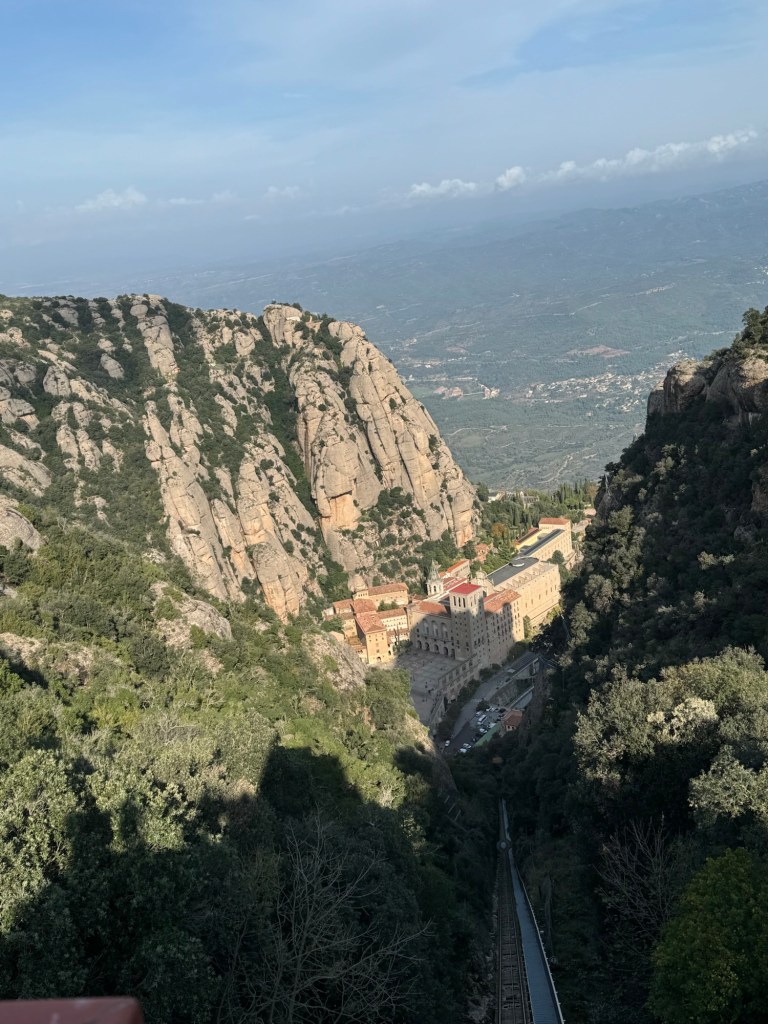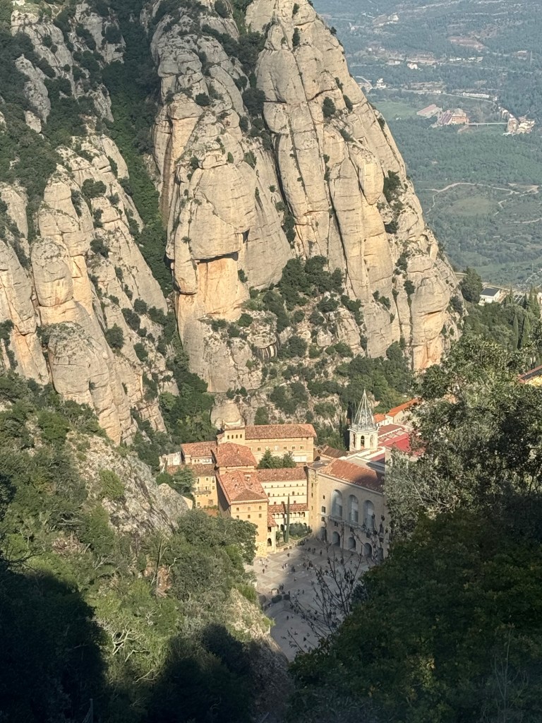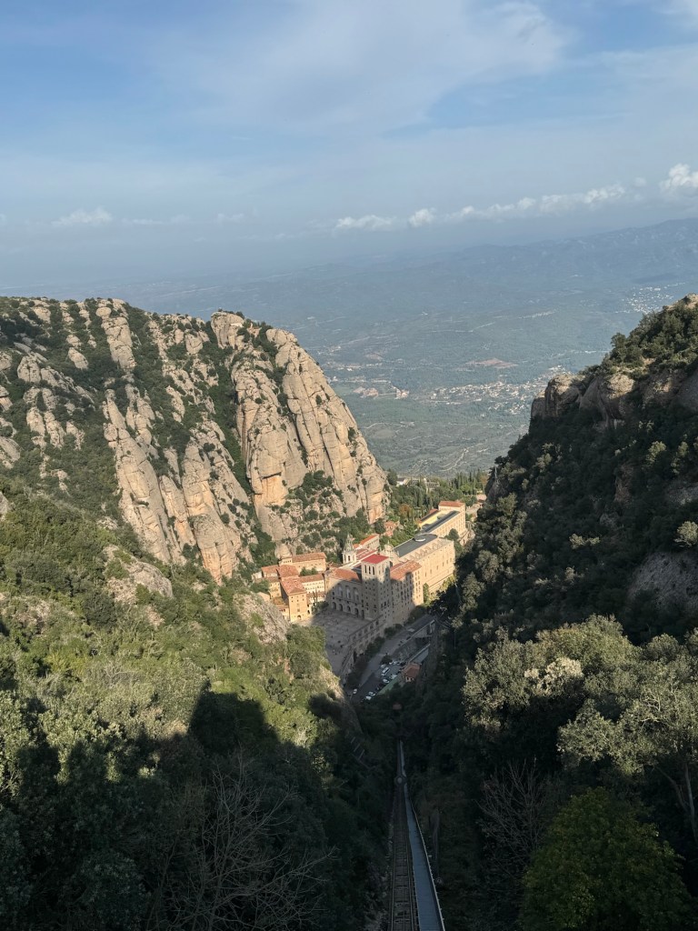 After lunch, I headed out exploring. Apart from the rack railway, there are two funiculars at Montserrat. One goes partially down the mountain to Santa Cova, the holy grotto where according to tradition the black Madonna of Montserrat was found my shepherd boys. This is often closed and when we were there, it only operated on weekends. The second funicular goes further up the mountain from where the monastery is. We went up there the previous year and I was absolutely blown away by the views. This is where I wanted to head. Graham did not fancy this. I arranged a meeting time and place with him and then I headed to the funicular station.