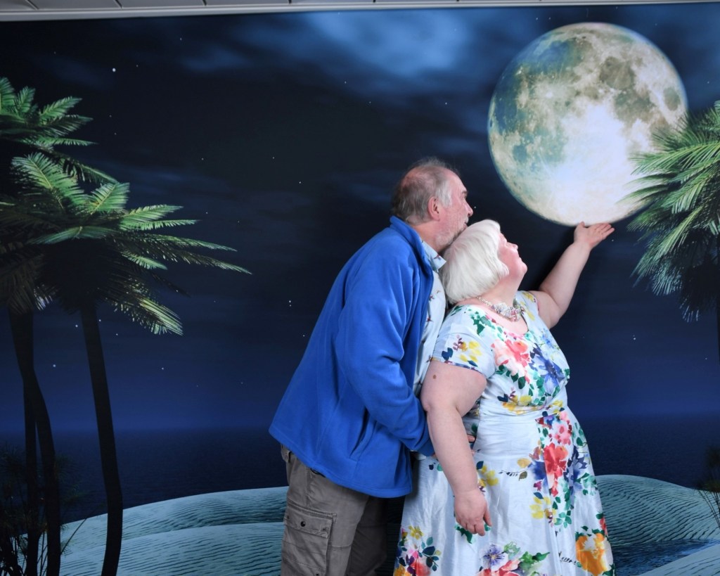Once we were reunited, we headed down to the Music Hall for trivia @5. We scored 13 out of 20 , which I was quite happy about. However, the winning score was 18. After trivia, we headed back to the cabin for some downtime. I set an alarm, and we had a bit of a nap. Once the alarm went off, we got changed. Then we went downstairs to get some photos before heading for dinner.