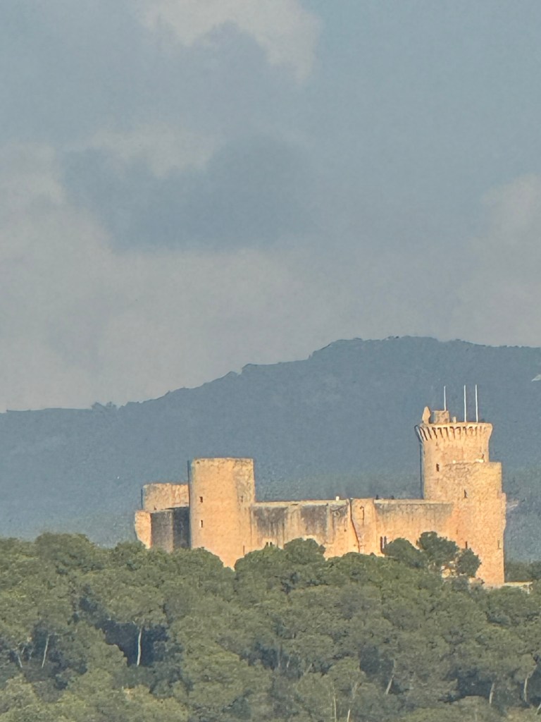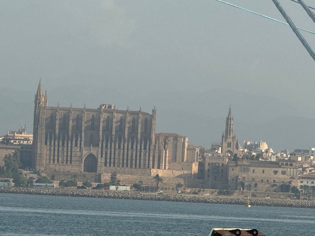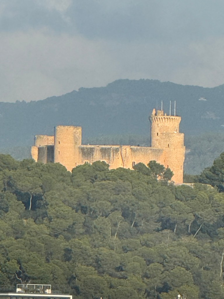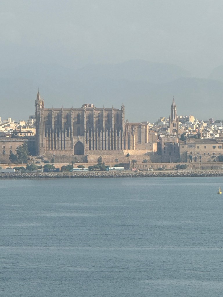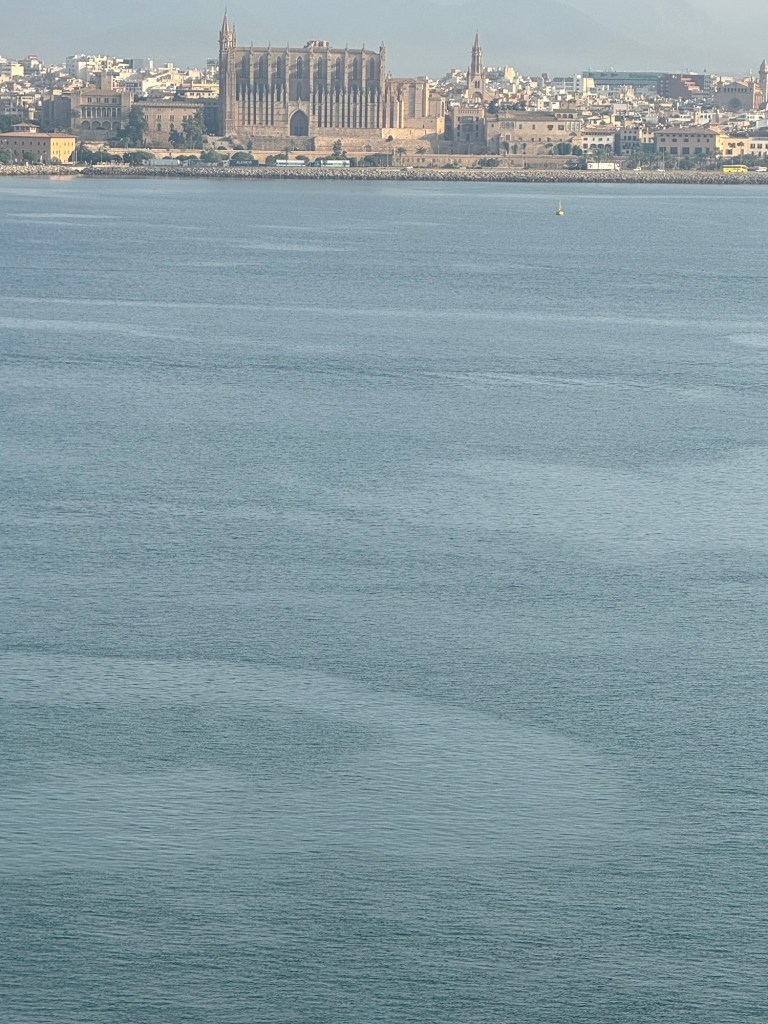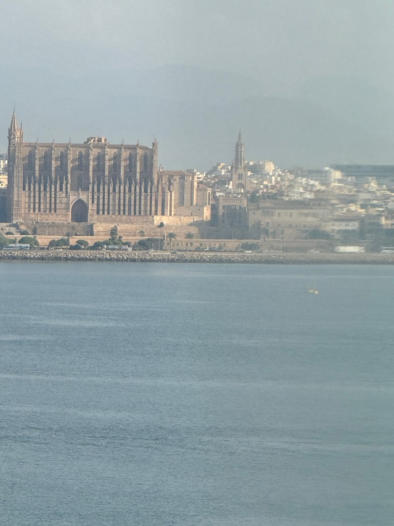 After breakfast, we headed out to get our port photos. From the dock, we had a great view of the cathedral. We walked towards the edge of the dock as there was no signage that we could not go there. However, before we got very far, we were told that we could not go there. I took a photo from in front of the gangway and then we headed back inside. We decided to head up to deck 15 to check out if we could get some photos from there. in the end, the sweet spot turned to be one of the bridge wings that can be accessed from the solarium. We did get a good view of both the cathedral and Bellver Castle. I took some photos and then we headed down to the Music Hall for morning trivia.