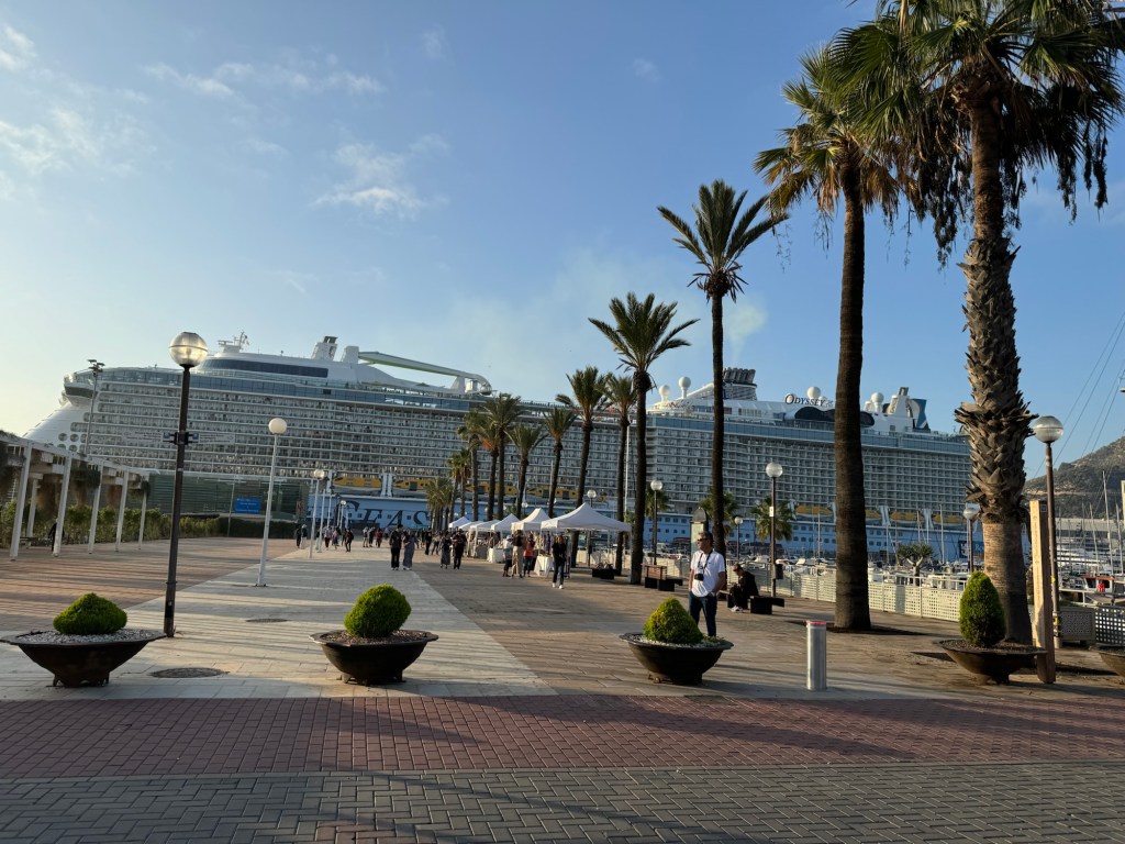After a lazy day the previous day, we had an excursion booked this day. Our port of call that day was Cartagena. We were up just after 7 and got ready. As our tour that day included food, we did not want a proper breakfast. We went to Cafe Promenade for a coffee and a donut. They have a coffee bar selling espresso-based drinks at Sorrento’s next to Cafe Promenade. We decided to use our coffee voucher for some proper coffee. Graham had an Americano and a cinnamon sugar donut. I had a latte and a chocolate donut.