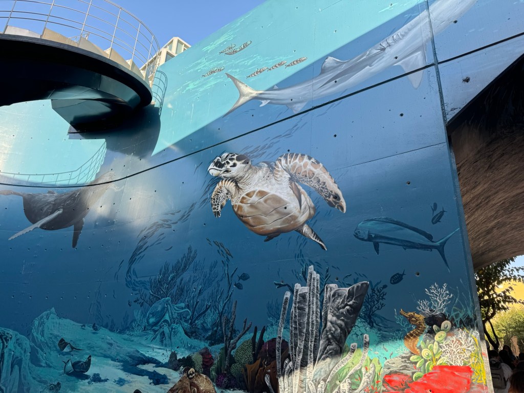 We took a slightly different route back to the port. This took us to another real gem. The underpass leading back to the port is decorated with a huge ocean mural which was created by an artist called Krasser who was born in Cartagena and went to art school there, but now lives in Milan. When we got there, a tour group was in the area. They moved on a short while later and I was able to take a photo.