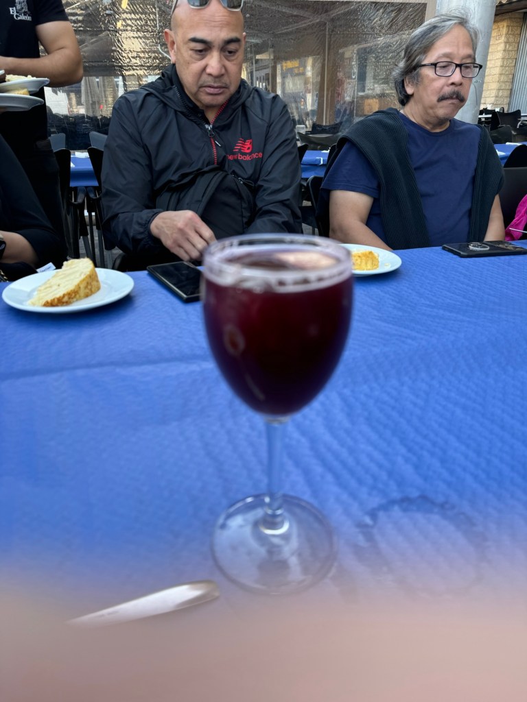 Our next food and drink stop was around the corner. We were again given a choice of drink and went with the sangria. The dish that we got to sample there was a cracker with potato and tuna salad and optional anchovy. Graham really liked this. For some reason he ended up with a second one. I don’t eat fish. They made me a cracker with tomato and vegetable sauce and quail egg. This was delicious.