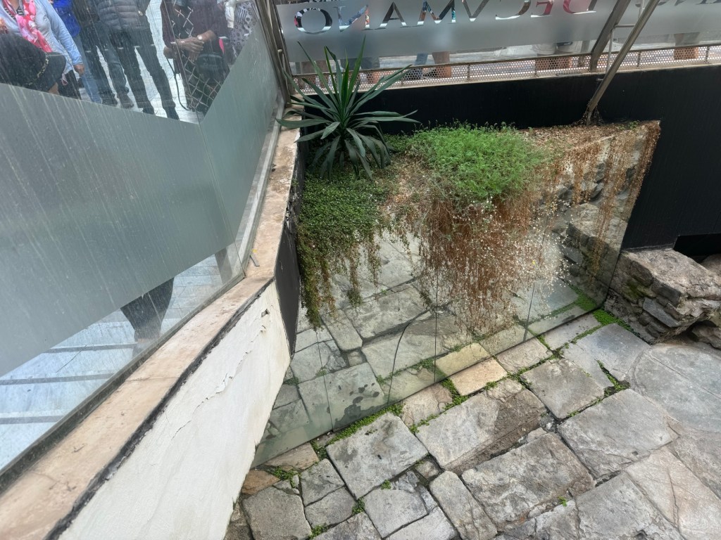 The building that the restaurant was in was decidedly quirky. The building was at some stage extended. The old building was kept, and the extension was built around it. The fountain that used to be outside the original building is now inside and is used as a table.