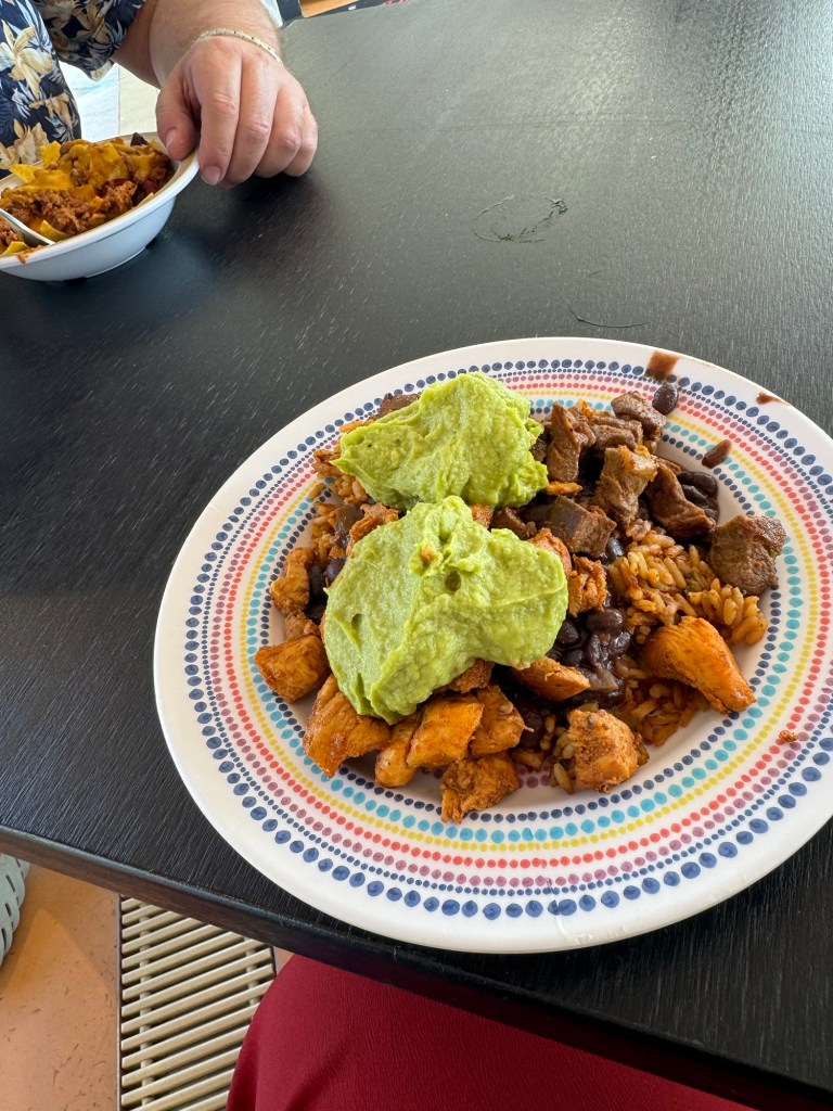 Once we were back on the ship, we quickly went back to the cabin to drop off our stuff. Although the food we had was very nice, there had not been a lot of it and dinner was a long time away. We decided to head up to El Loco Fresh to get some food. Graham had nachos with chilli beef and cheese sauce, and I had Mexican rice with black beans, chicken and beef carnitas and guacamole. I loved mine, but Graham was not so keen on the chilli beef. We then stopped at Sprinkles for some strawberry. vanilla swirl ice cream on the way to the Music Hall.