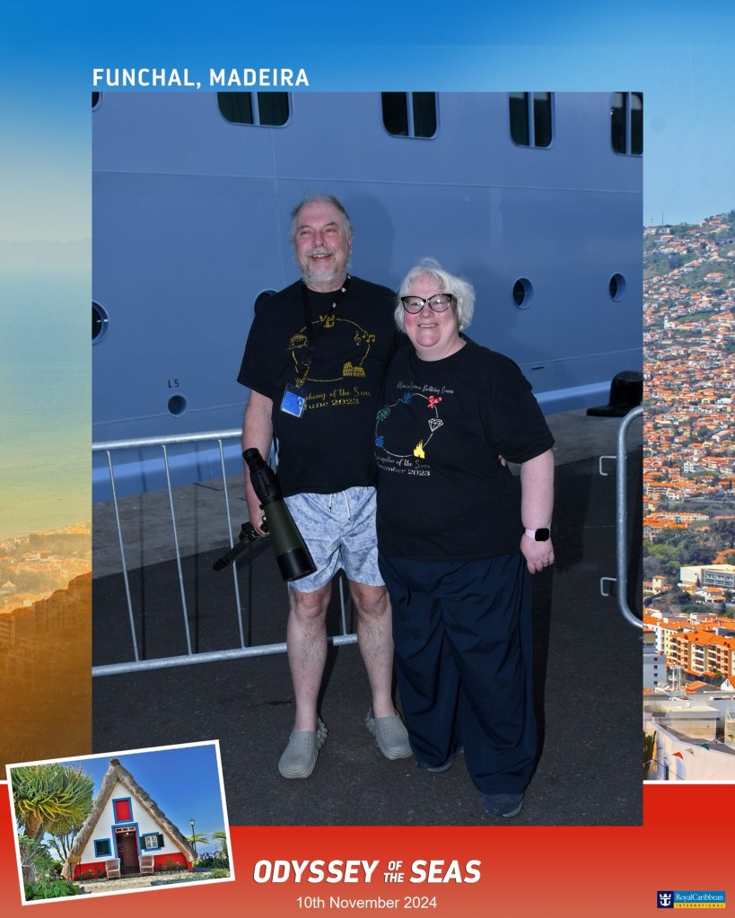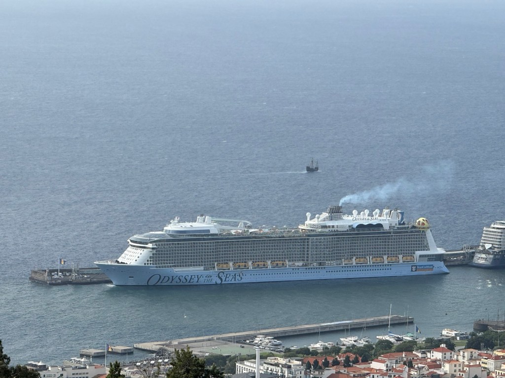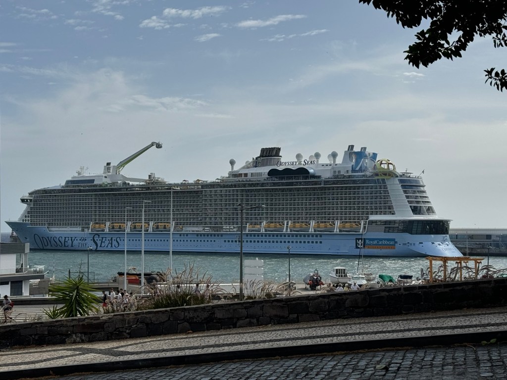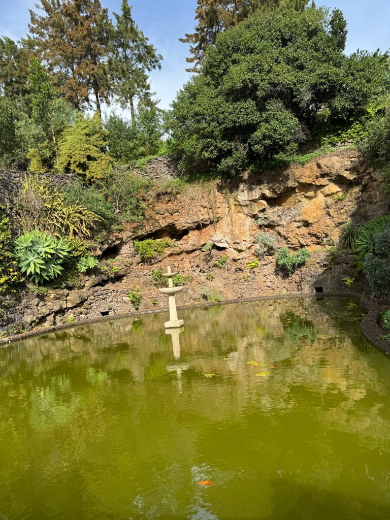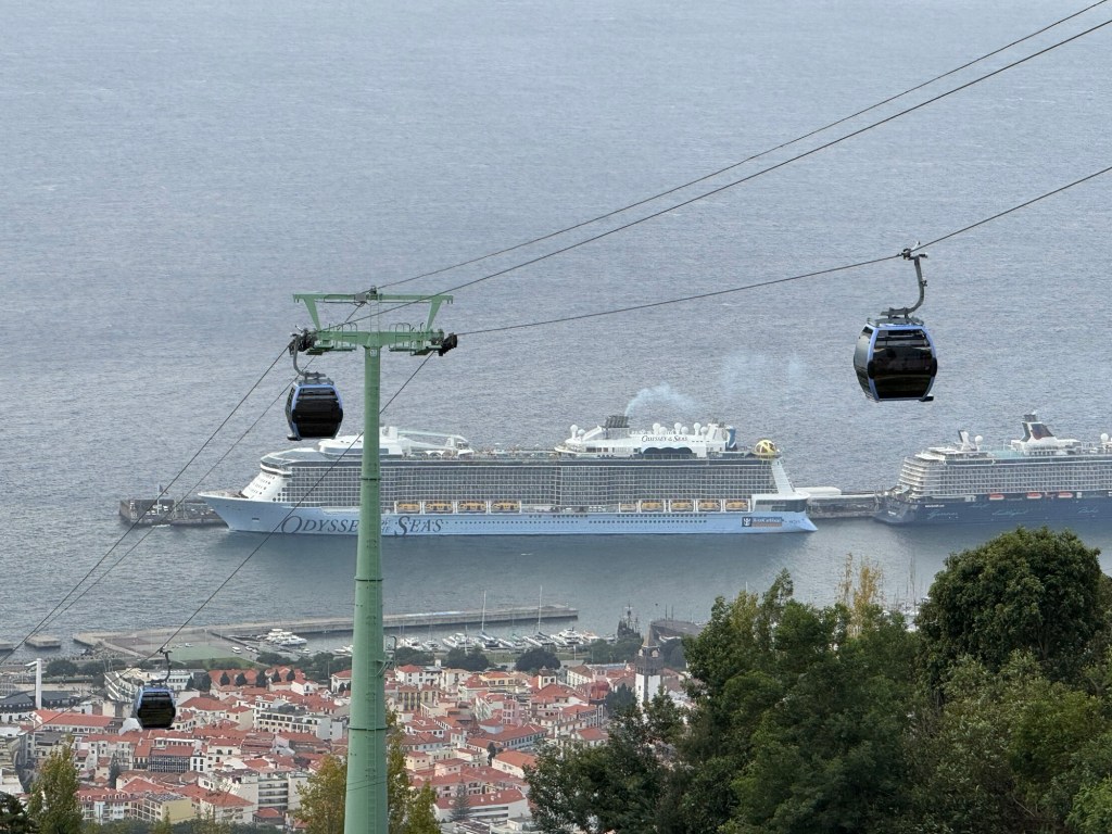 Our first stop was a lake with a fountain and some fish. This was a nice peaceful spot, and we stayed there for a while. Then we moved on to a viewpoint. Graham found a route that did not involve steps and was not too steep. We had a nice view of the ship and over Funchal. We also saw the cable car.