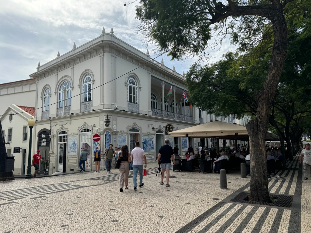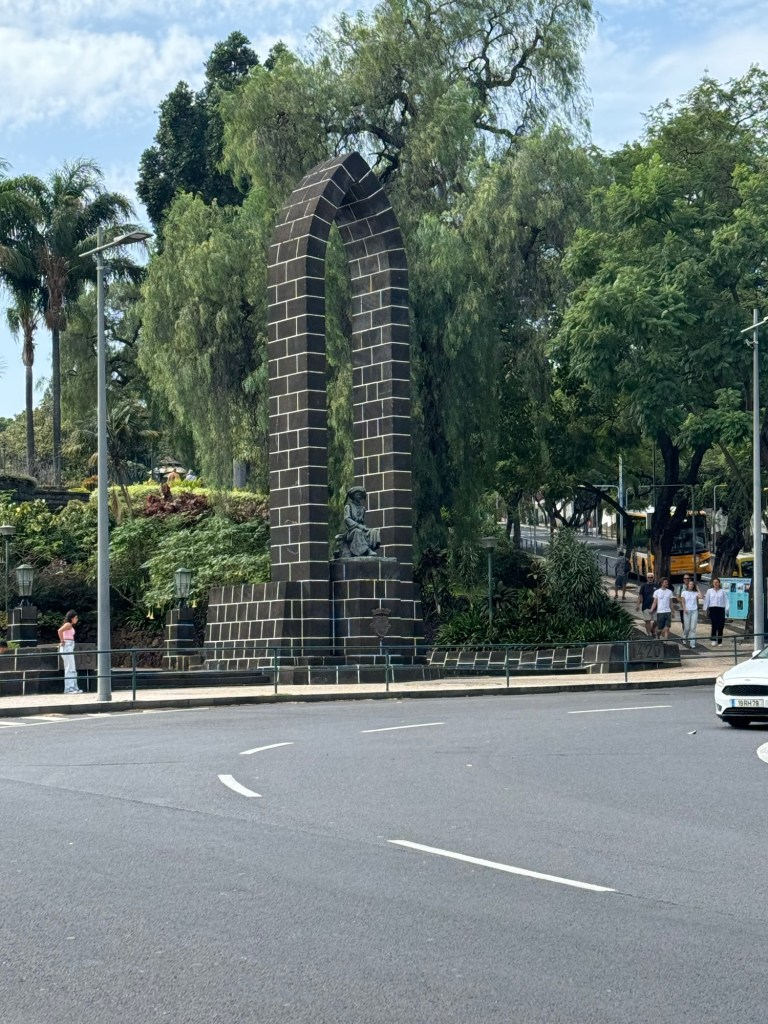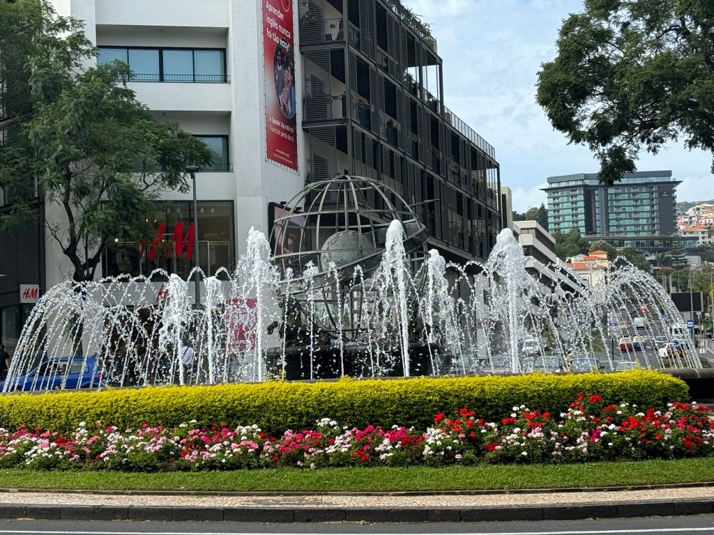 Once I had finished my tasting, we headed back in the general direction of the shuttle stop. Funchal is such a pretty city, but it was Sunday, and a lot was closed. It was also very hot, and we were essentially done walking. Graham had seen an interesting fountain up ahead and suggested that we should make a slight detour to have a look. We walked past a beautiful building on the way. I took a few photos on the way to the fountain and then back to the ship. When we got to the shuttle area, there were plenty of shuttles waiting. Everybody got a seat and once most seats were taken, we left and headed back to the ship.