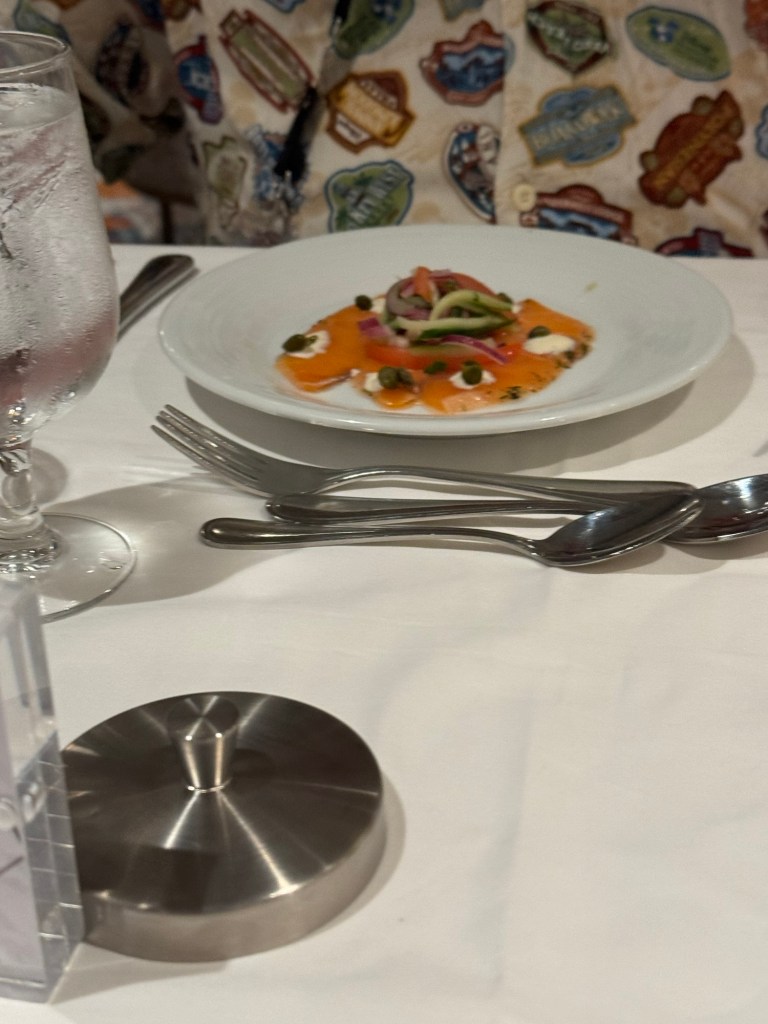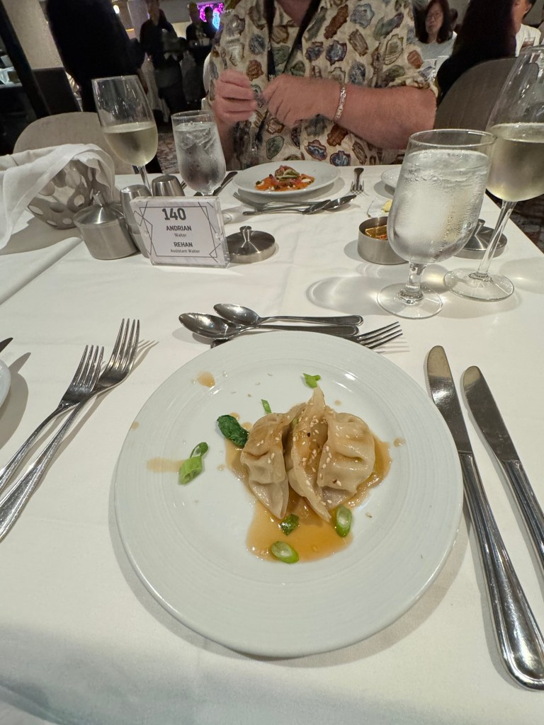 The menu that evening was A Taste of Asia. When this menu was introduced, I was hugely excited. I do love Asian food in all varieties. We also had their take on Asian food on cruises from China and Singapore and this was always delicious. During the first two cruises after the introduction of the new menus, this did not appear as there are some regional variations to the menus. Apart from the standard menus (Welcome on Board, A Taste of France, A Taste of Italy, Welcome to Royal Night and Bon Voyage) that seem to appear on every cruise of 7 nights or longer, there are some menus that are inspired by where the cruise is actually sailing to. On our Med cruise, we had A Taste of the UK and A Taste of the Mediterranean and on our Mexican Riviera cruise, we got a Taste of the USA and a Taste of Mexico. I was delighted when A Taste of Asia turned up on our back-to-back Alaska cruises last May. However, the execution did not thrill me although there are some elements that I really like.