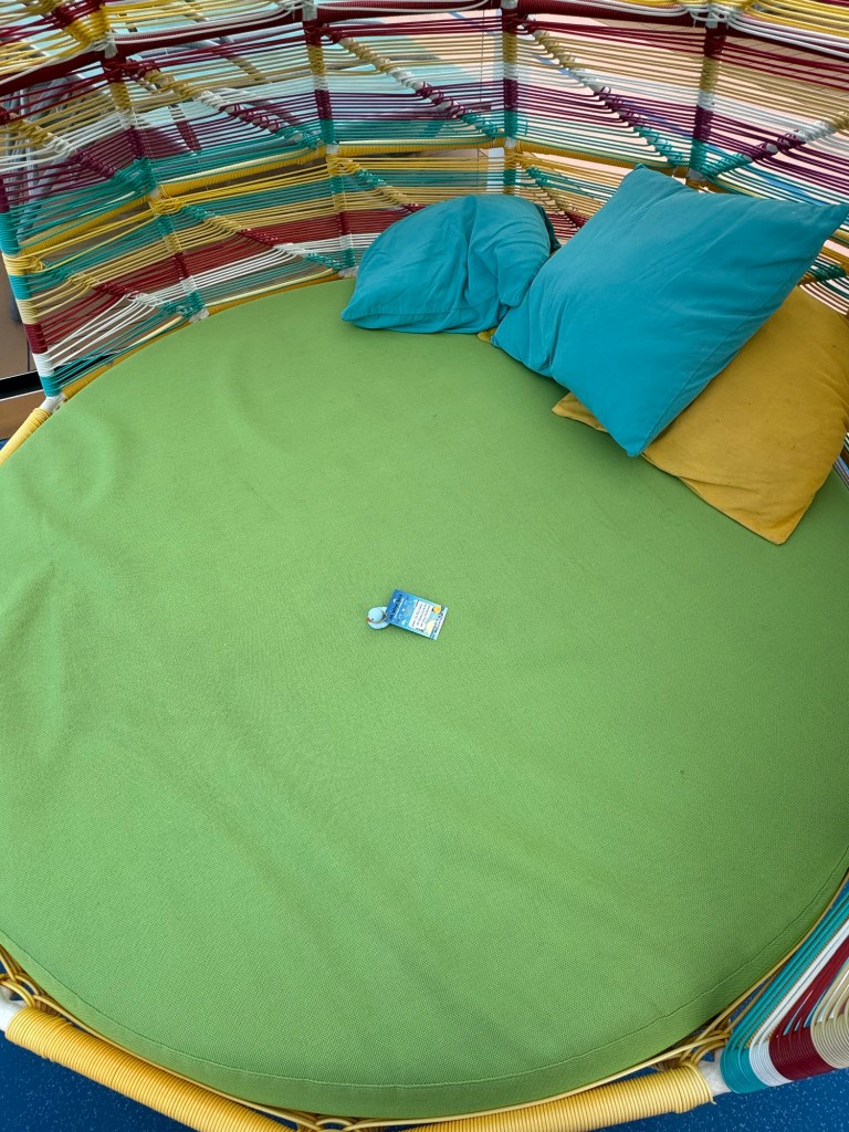 After this trivia marathon, we headed up to the Seaplex for some lunch at Playmakers. Playmakers comes with a la carte pricing, but always provided huge portions at very low cost. They also have amazing nachos. Whenever we are on a ship that has Playmakers, we always make sure that we have the nachos once per cruise. We had the pile on nachos with chili con carne. The price had doubled since 2022, but we thought this still good value based on past experiences. We have always shared the nachos and never once managed to finish them. Well, the portion has shrunk. Not only did we have every last crumb, but we were still hungry afterwards. I think we would probably have managed a portion each. They were however as delicious as always. Graham had a glass of Chardonnay, and I had the Knockout Punch, which consisted of light rum, pineapple juice, orange juice, grenadine, and a float of dark rum. This was the third cocktail I have tried at Playmakers over the years and none of them has really thrilled me. This is surprising as the cocktails that are unique to one venue are normally very good.