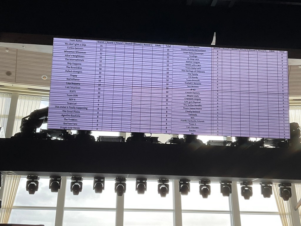 After progressive trivia, we headed down to the Music Hall for morning trivia. We did better with this and score 15 out of 20 with a winning score of 18.