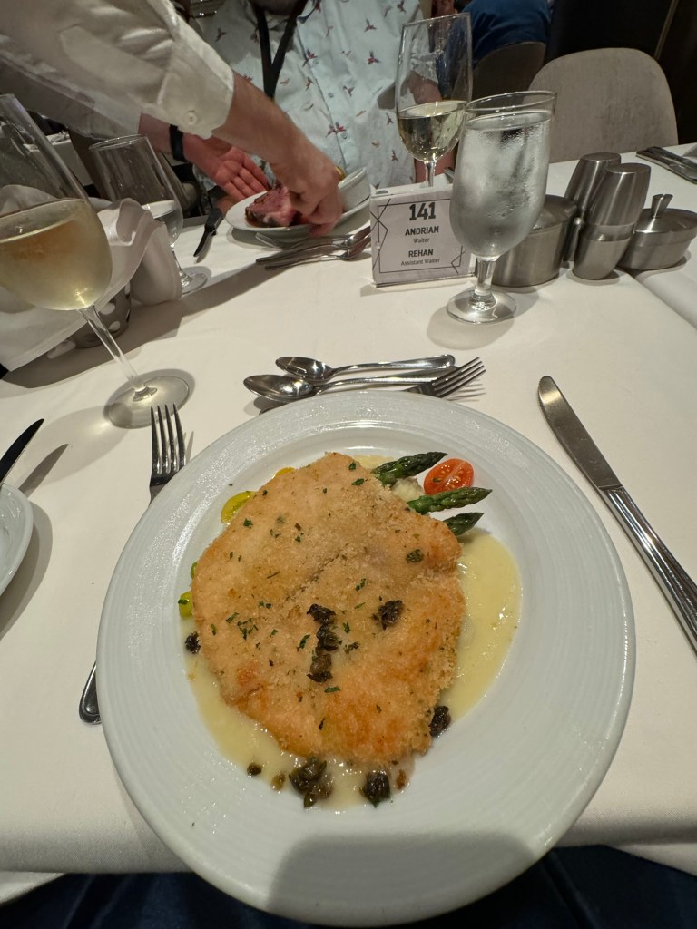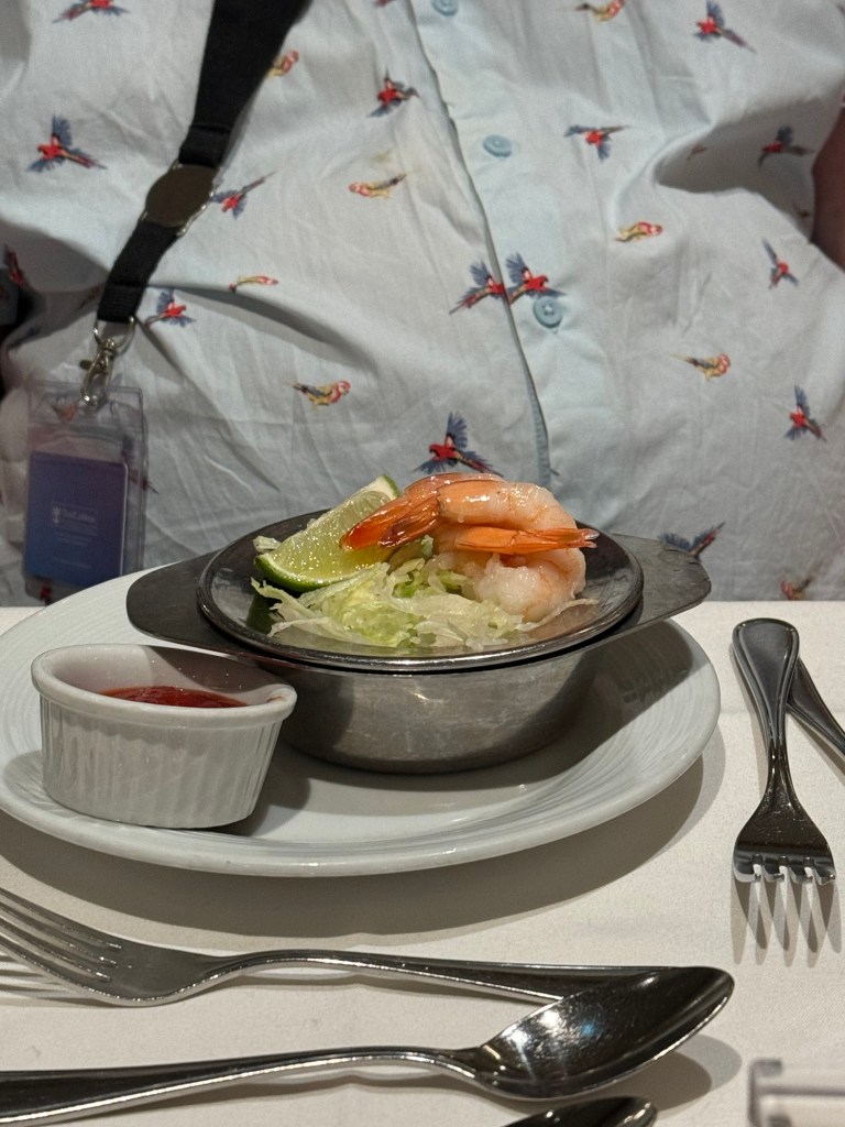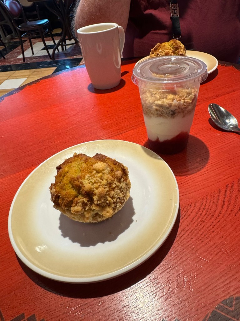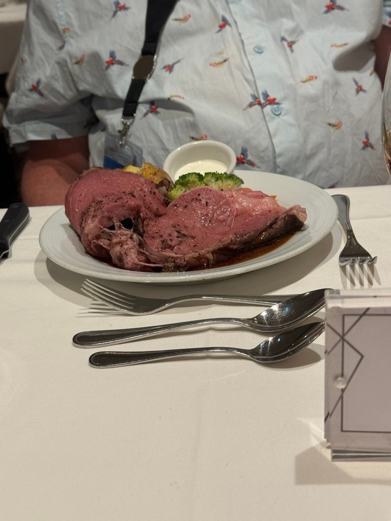 This was the day I was celebrating the big 5-0. We were awake around 7:00 again. Things were decidedly bumpy that day. It is a good job that neither of us gets seasick. We got up and ready and then headed to the Promenade Cafe for some light breakfast. We had plans for lunch and did not want to spoil our appetite. Graham had a carrot muffin and a croissant with a cup of coffee. I have never encountered carrot muffins on Royal Caribbean, but had them on a work trip on Celebrity and really liked them. This one did not disappoint either. I also had a strawberry granola parfait. I decided that I had deserved a treat and had a nitro cold brew with vanilla sweet cream from Starbucks. I thought the game was up. I had kept quiet that I was celebrating a special birthday. However, when the person at Starbucks swiped my Sea Pass card, she wished me a happy birthday. Fortunately, this was the only time this happened all day.